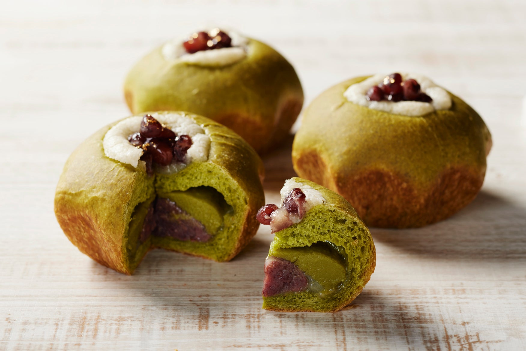 抹茶を練り込んだブリオッシュ生地に、抹茶カスタードクリーム、つぶあん、餅っとした食感のぎゅうひを重ねました。小豆と金箔を添え、抹茶の旨みと上品な甘みを楽しめる仕上がりです。