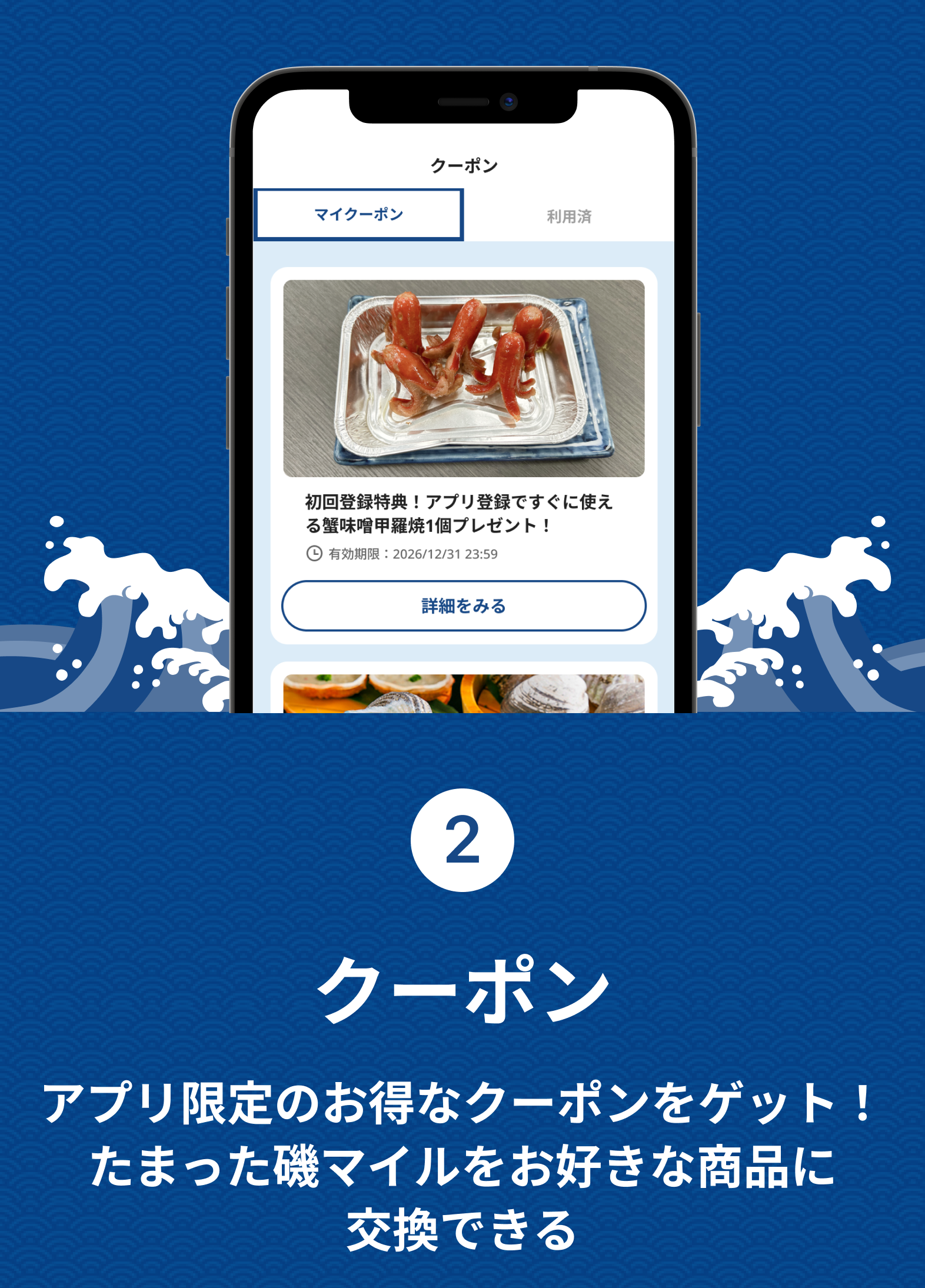 本アプリは、モバイルオーダーと連動した「磯マイル」や、毎日楽しめる「釣りゲーム」など、磯丸水産での体験をより「楽しく」「お得に」アップデートするコンテンツが満載です。