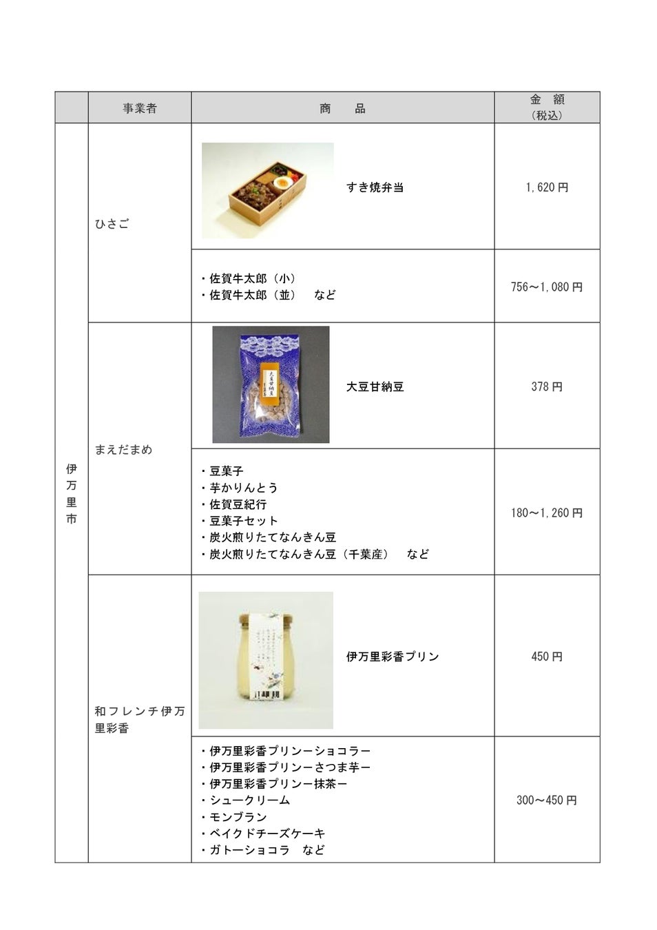 【主な販売商品一覧】※販売商品の内容については変更となる場合がございます。