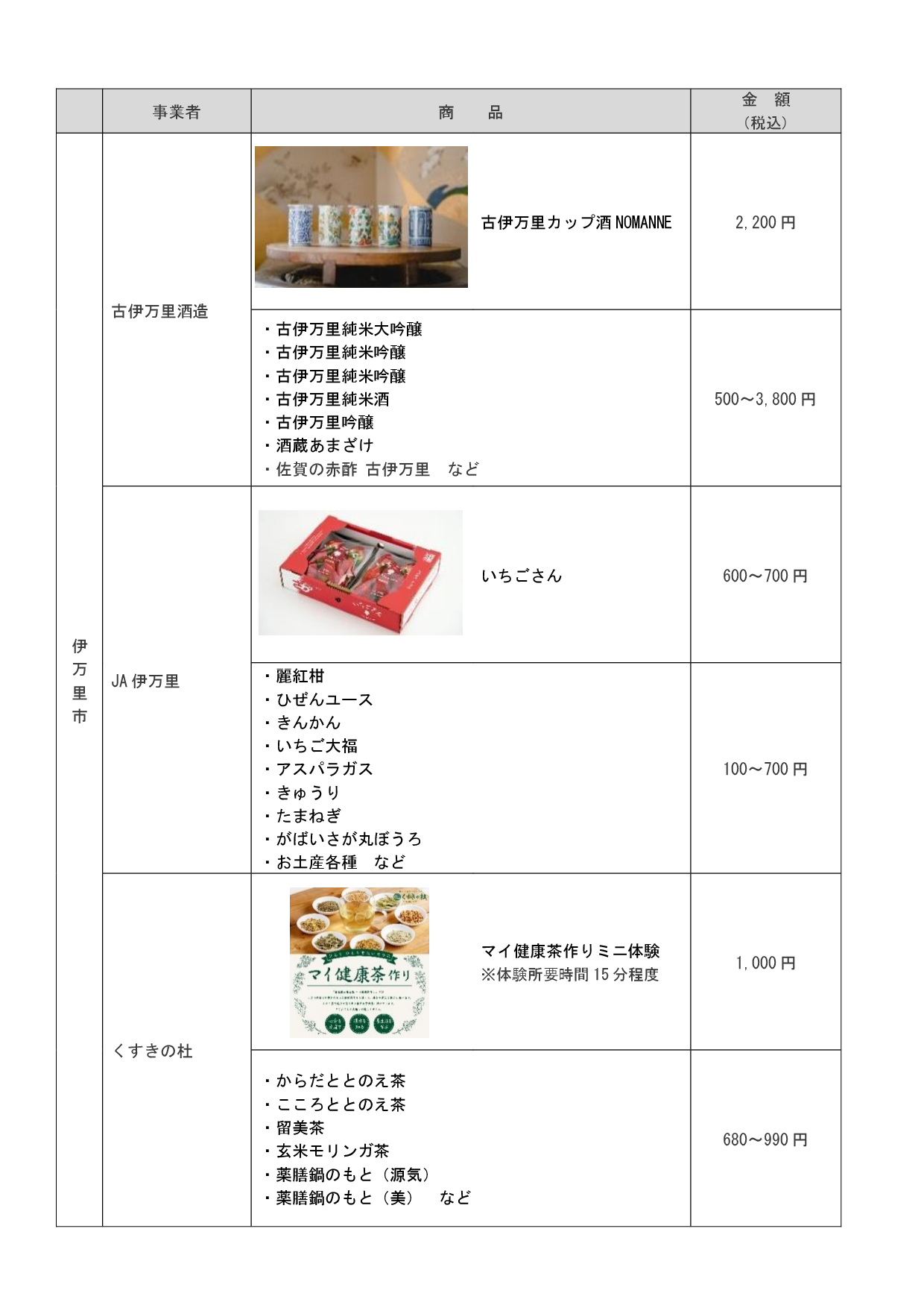 【主な販売商品一覧】※販売商品の内容については変更となる場合がございます。