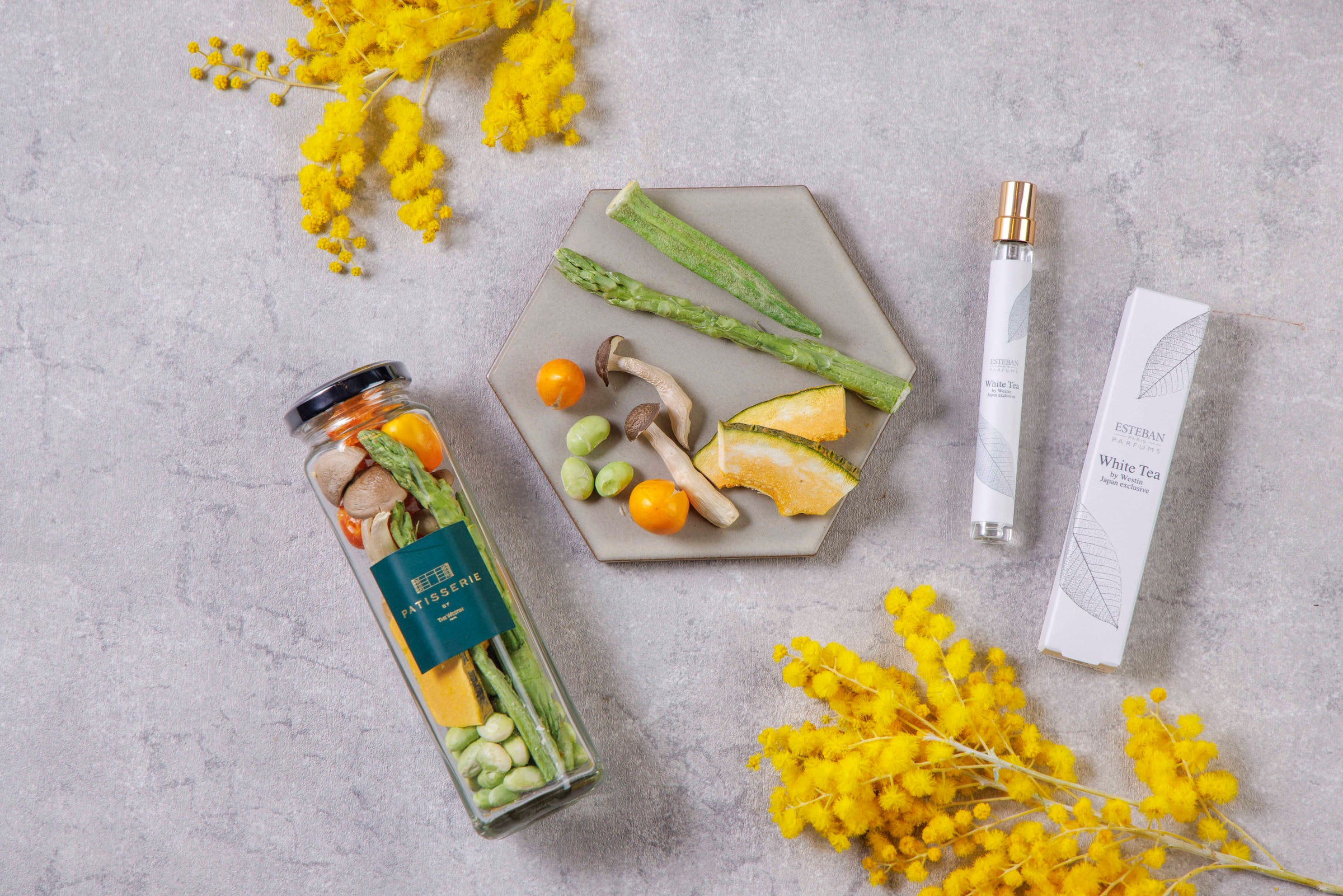 ウェスティンホテルのロビーを包むホワイトティーの香りとともに至福のひとときをお届けします。「ホワイトティー オーデプランツ」は水性香水ならではの軽やかなつけ心地が特長。環境に優しいアップサイクルビューティーを含む3つの植物成分が肌と髪に潤いを与えます。ヘルシーで見た目にも美しいドライベジタブルとセットにいたしました。大切な方への贈り物やご自分へのギフトにも最適です。