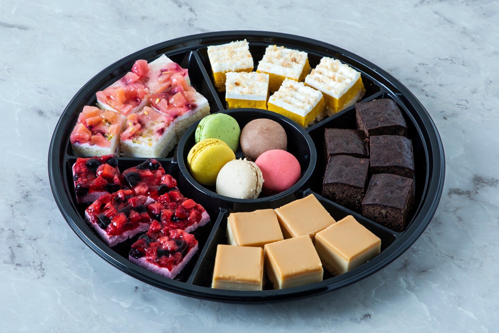 今回提供する「スイーツプレート」は、彩り豊かなスイーツを詰め合わせたオードブル形式です。デスクワークの合間に手軽につまめるラインナップで、自然と会話が生まれる仕掛けを作ります。