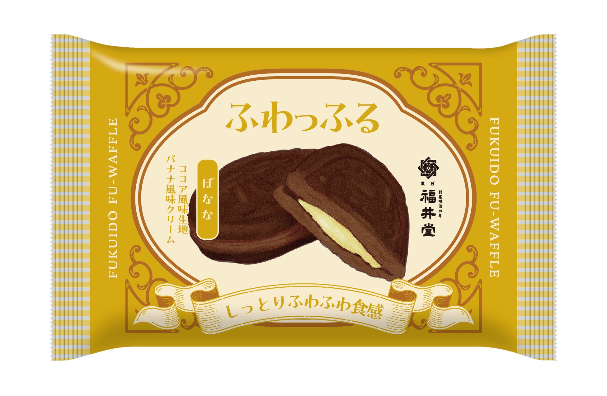 ココアを混ぜ込んだ生地に、バナナ本来のフレッシュでコクのある甘さを引き出したバナナ風味クリームをサンドしました。