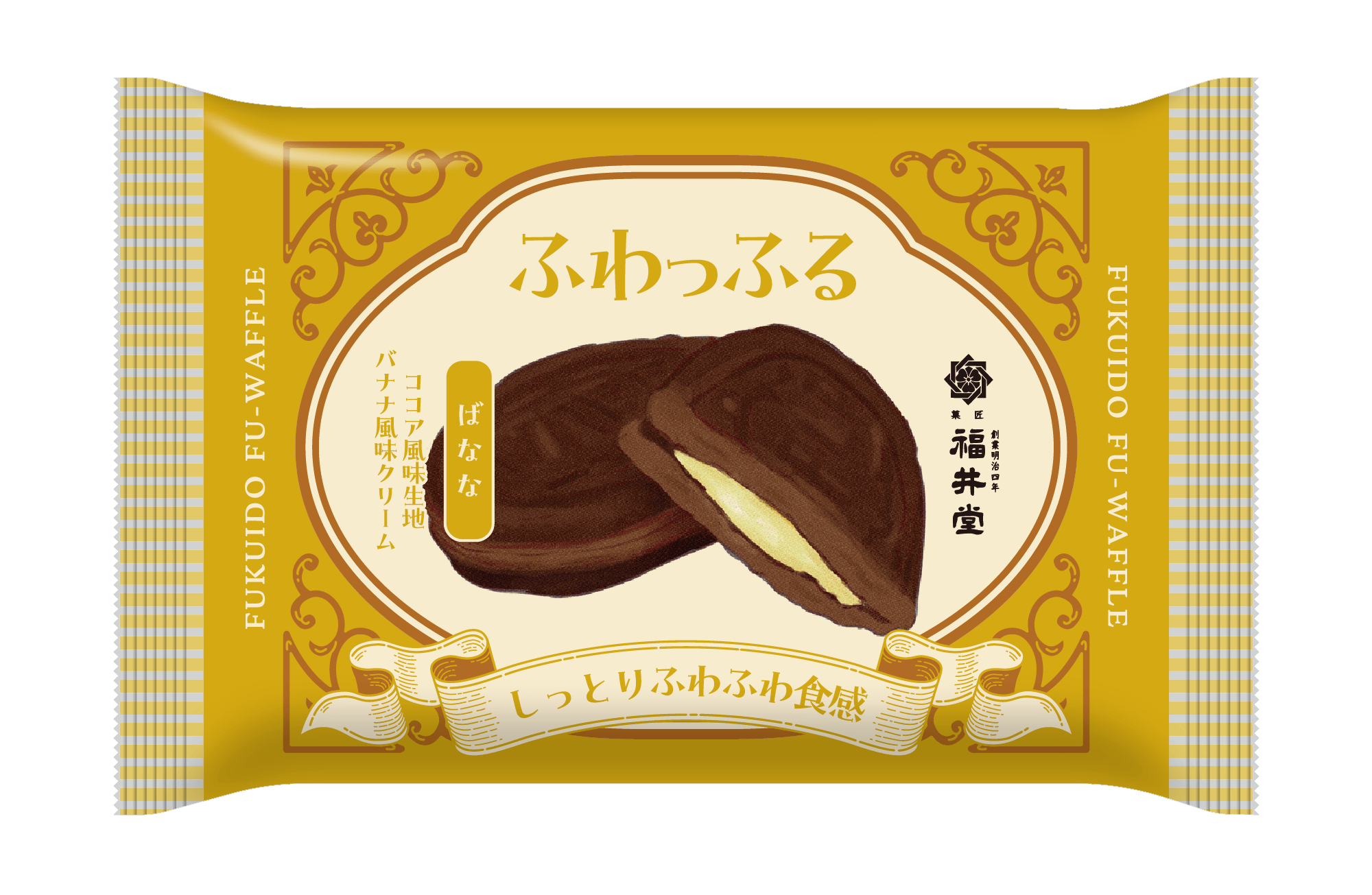 ココアを混ぜ込んだ生地に、バナナ本来のフレッシュでコクのある甘さを引き出したバナナ風味クリームをサンドしました。