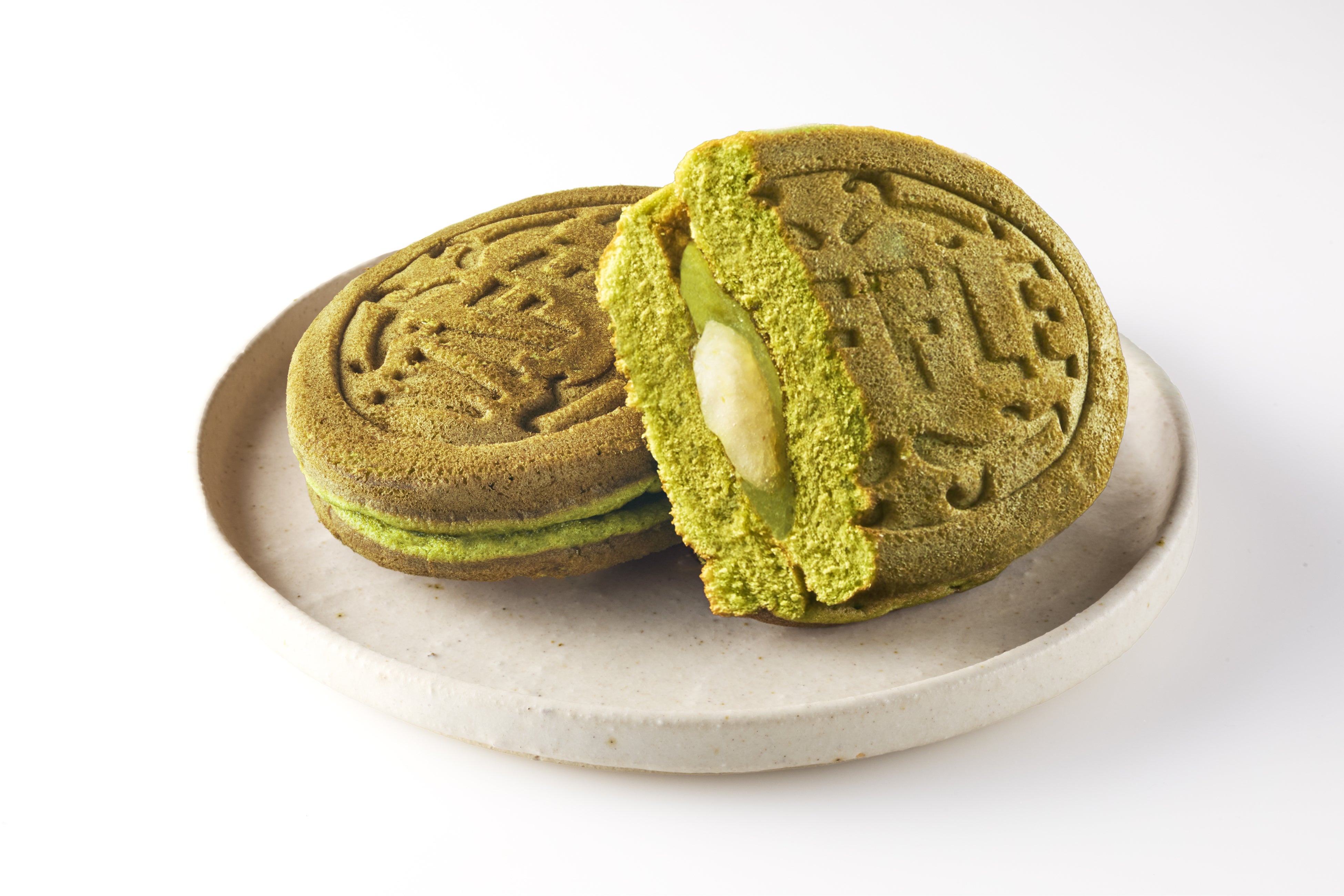 国内産抹茶を混ぜ込んだ生地に、抹茶餡とやわらかな求肥をサンドしました。