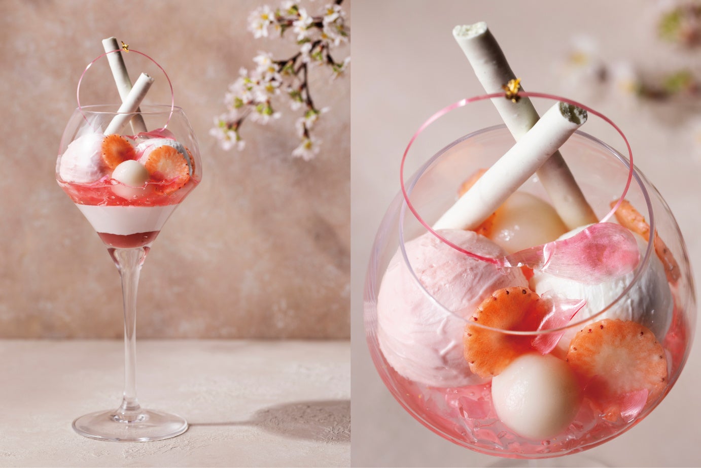 ◾️【〈数量限定〉パフェ】桜尽くしのパフェが登場!庭園に咲く桜をイメージした飴細工で春景色を表現、桜本来の香りが広がる一品