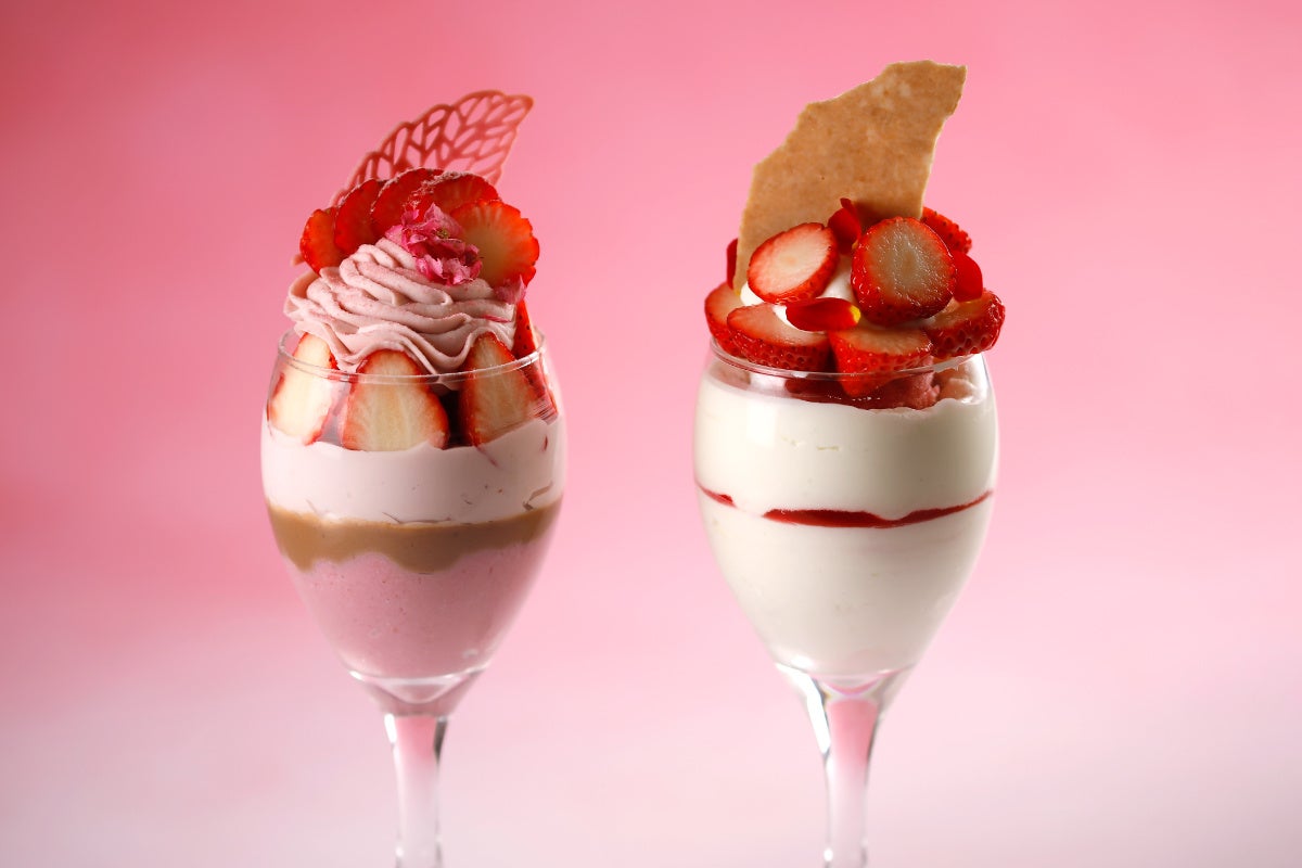 さくらと苺を主役にしたパフェ2種類と、各店ごとに異なるデザート全5商品を期間限定でご用意。