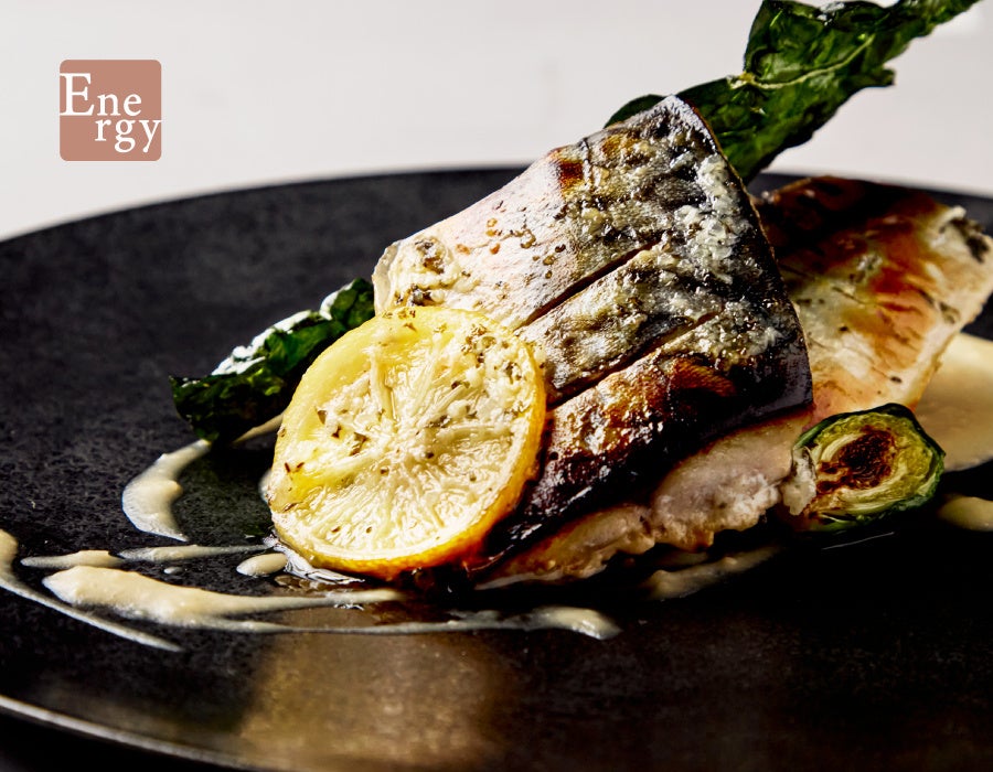 ローズマリーなどの香草と塩麹でサバを漬け込みオーブングリルで皮面をパリッと仕上げ、さっぱりとしたクリームソースを合わせました。