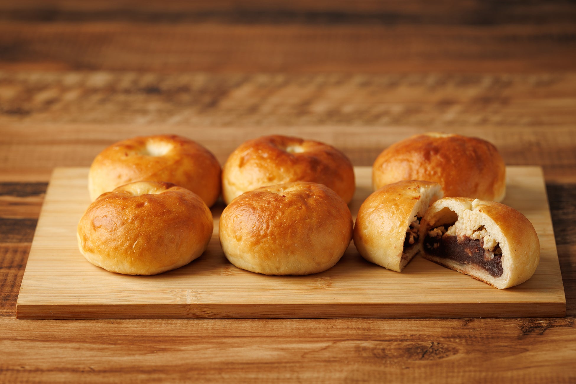 オールスクラッチで仕込む、湯種を一晩寝かせた生地。もっちりと弾むような食感と、やわらかな口あたりに焼き上げました。こしあんとこぼれ梅のやさしい甘みと風味を引き立てるため、生地の甘さは控えめに整え、素材本来の風味を生かしたシンプルな味わいに仕上げています。
