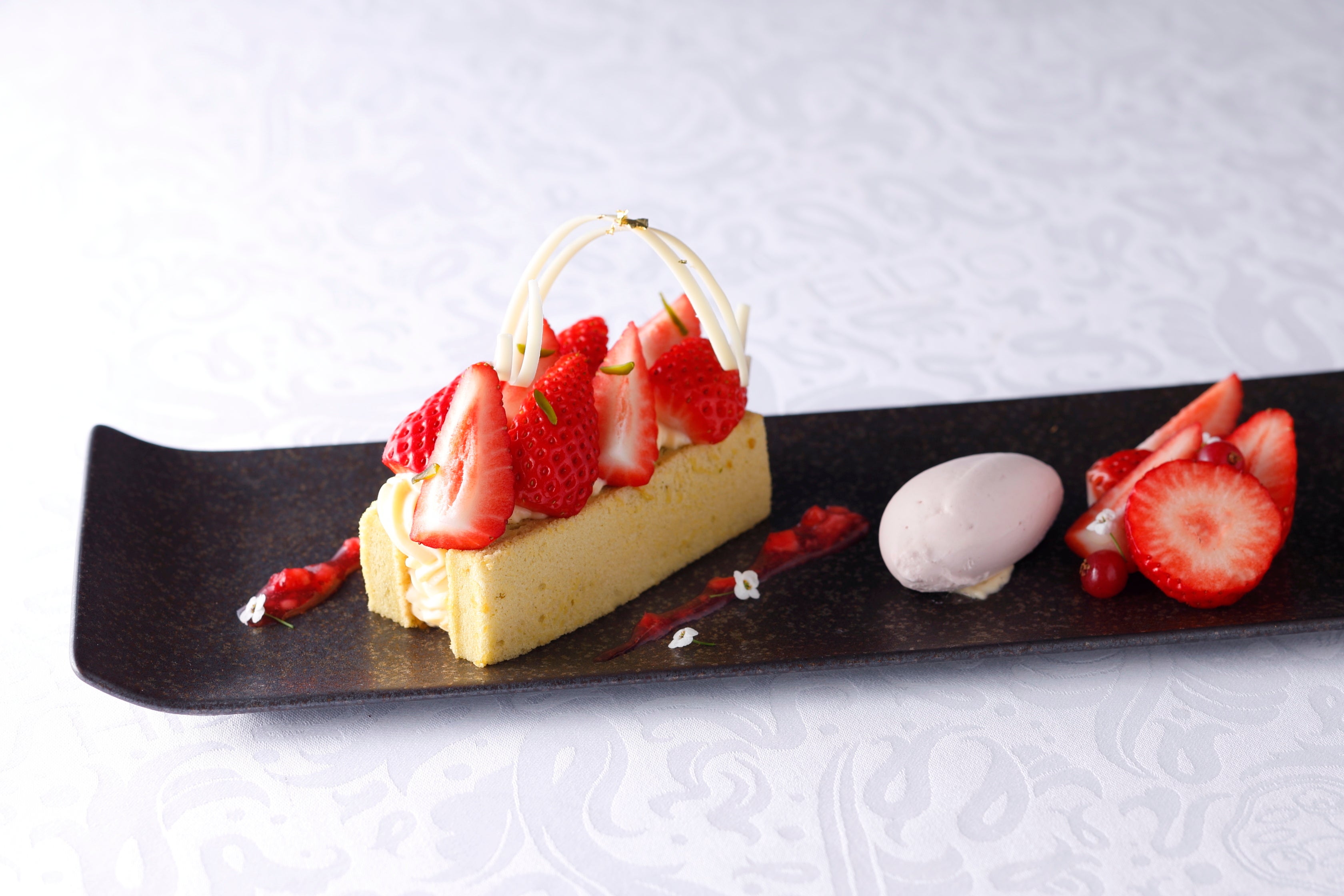 「和歌山県産苺“まりひめ”とピスタチオのお皿で楽しむフレジエ “まりひめ”で作ったアイスクリームとともに」