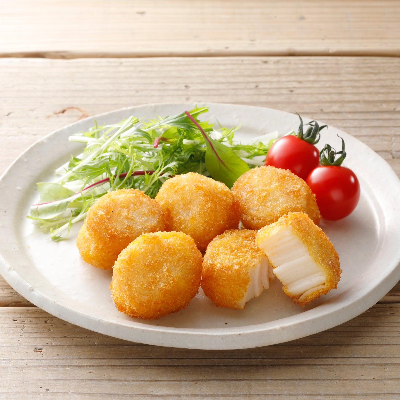 “ホタテ価格高騰”や“家庭での加熱調理の手間”といった食の課題を解決する、本物のホタテフライのような味・食感・見た目を再現した揚げ物。サクサク衣の中にホタテの旨みを凝縮した、おつまみにもおかずにもぴったりな、本物のホタテ顔負けの“ほぼ”ホタテフライです。