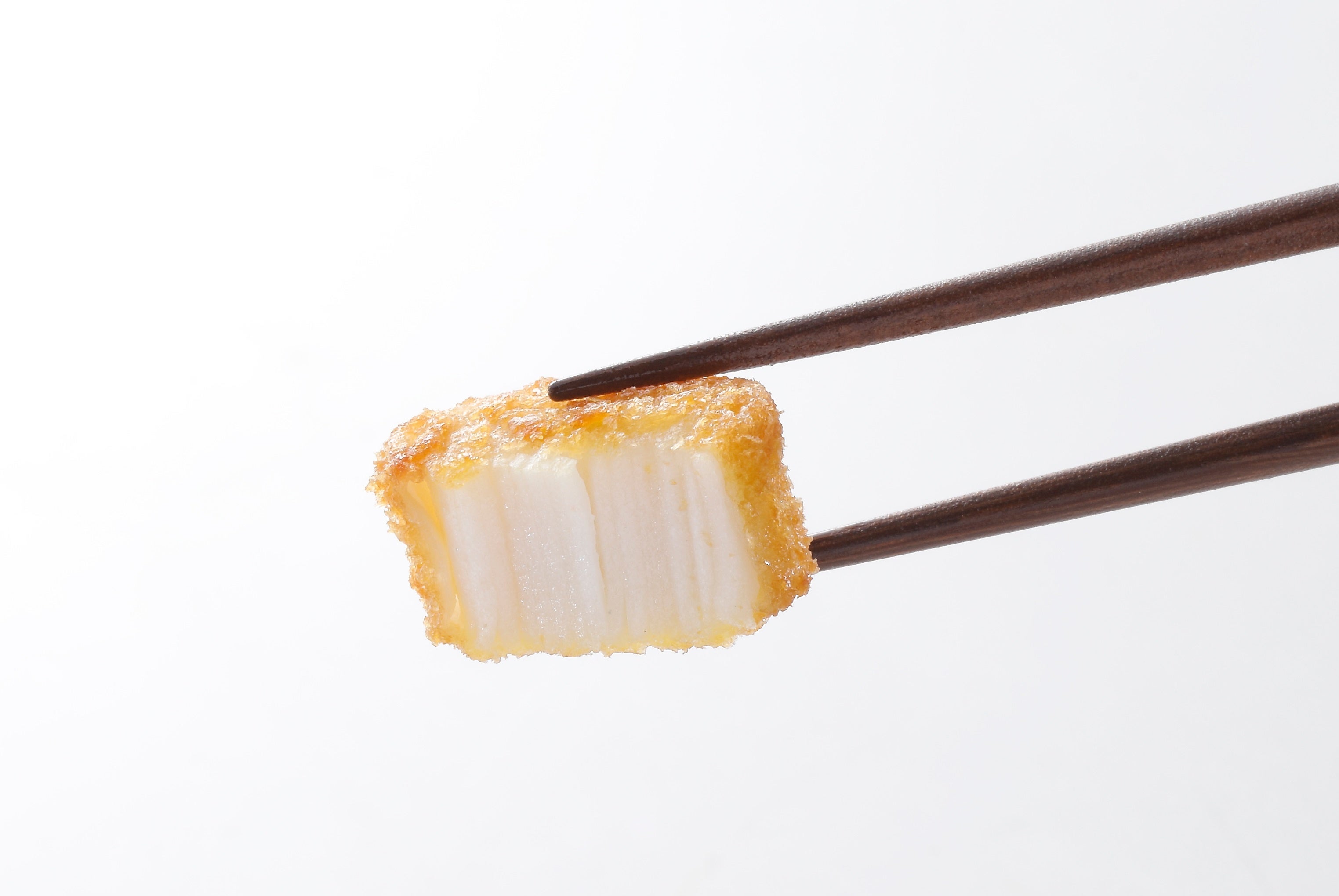 繊維を太くすることでホタテ特有の繊維感を再現。厚みのある形状により、本物のホタテの貝柱のような見た目と食べ応えを実現しました。