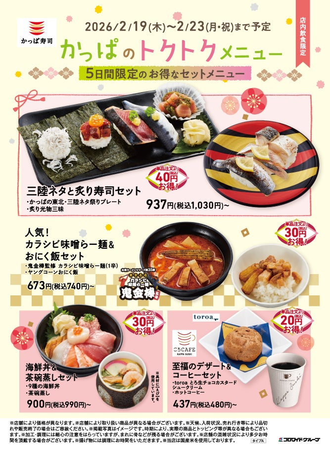 2026年2月19日(木)〜2026年2月23日(月・祝)の5日間限定、かっぱ寿司全店にて販売