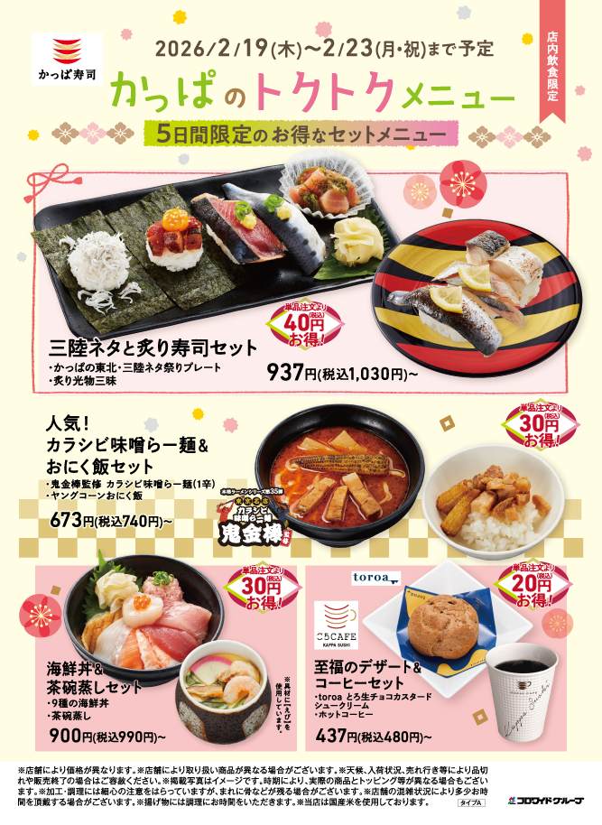 2026年2月19日(木)〜2026年2月23日(月・祝)の5日間限定、かっぱ寿司全店にて販売