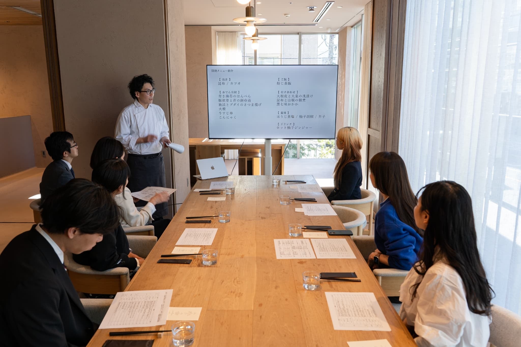 和食にはもともと「無駄にしない」という感覚が自然に根付いており、おでんはその考え方を最も素直に表現できる料理だと考えました。学生の皆さんとの対話を通して、サステナブルとは我慢ではなく、日々の選択の積み重ねなのだと改めて感じています。そんな選択による循環を、このおでんを通して伝えられたらと思います。