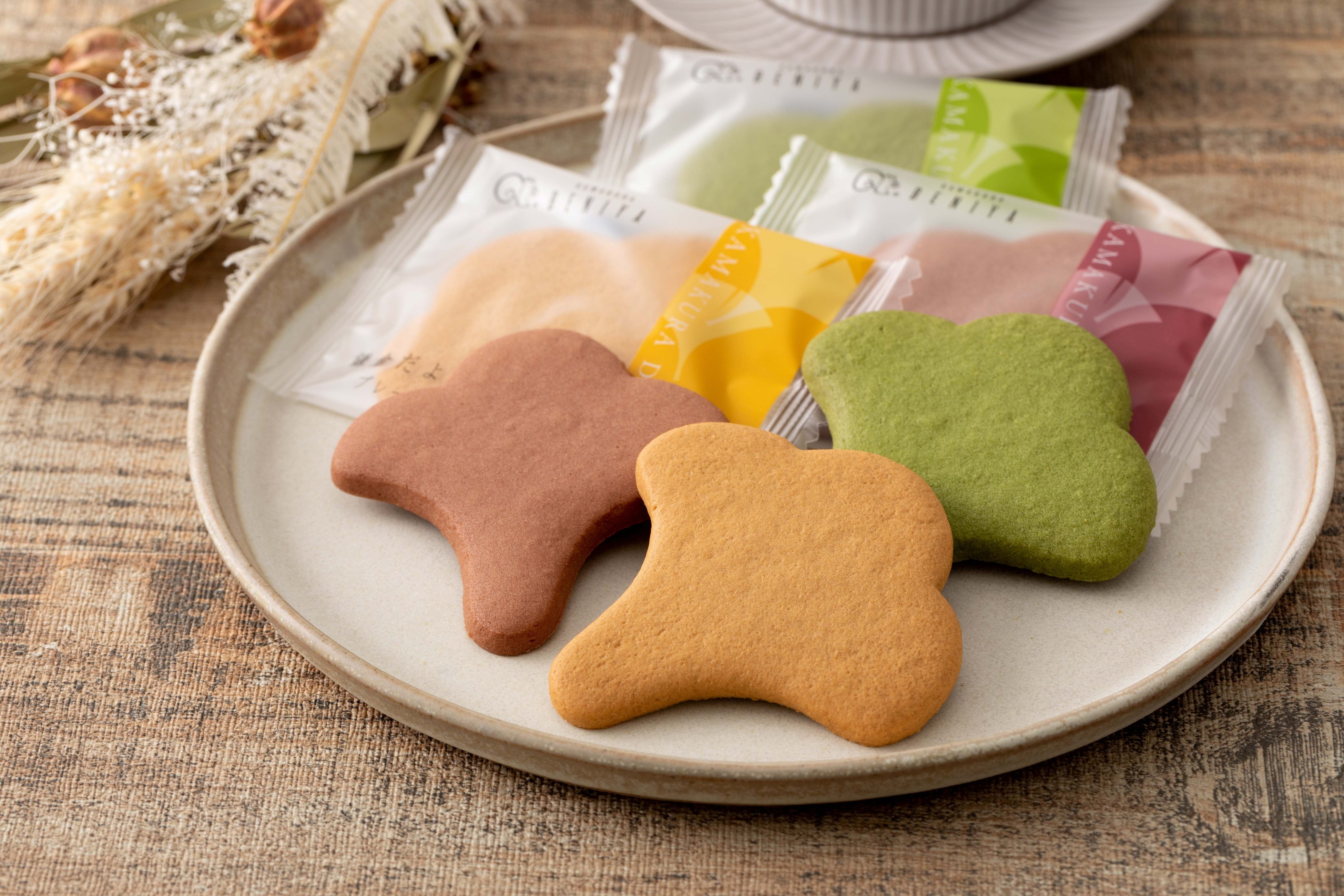 鎌倉の風情を、3種類の香り豊かなサブレで表現しました。バターとはちみつベースの「プレーン」、鎌倉彫のカラーを十勝産あずきで表現した「あずき」、青葉若葉の銀杏を西尾産の抹茶で表現した「抹茶」。軽やかな食感と、ほんのり香る甘さをお楽しみください。