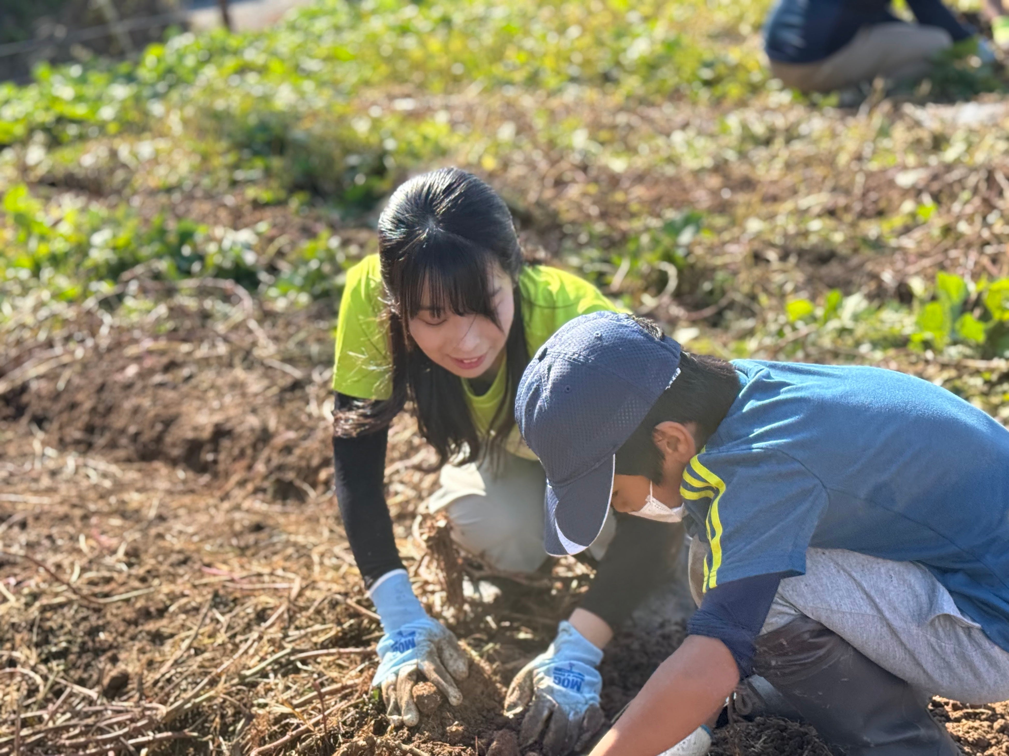 鳥獣被害によって耕作放棄地となった畑を再生した場所で、農地再生のシンボル的な場所として 「 株式会社イノP 」 と共同でサツマイモを植え育てています。また、二酸化炭素の吸収率が杉の4倍で4年から5年で木材として利用できる早生桐を植え、環境保全意識の啓発につながる地域密着型の活動に取り組んでいます。早生桐の活用方法については今後イノP社と共に調査・検討を進めます。