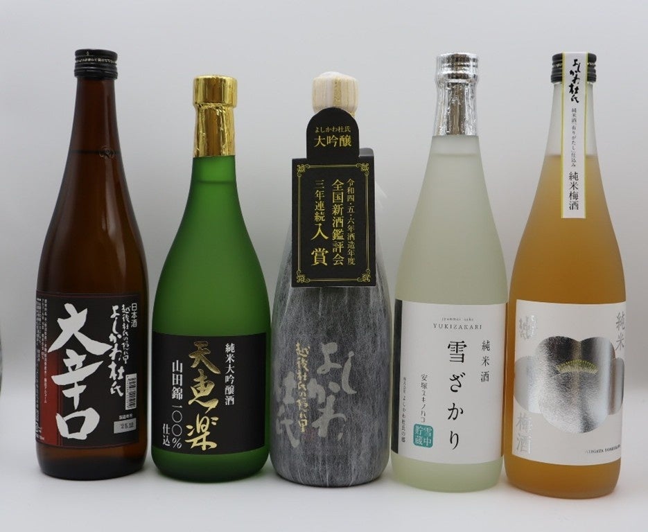 代表銘柄の一つ「よしかわ杜氏 大吟醸」は、上品な香りとキレのある酸味が口の中で広がる、特別感のある一本。「雪ざかり」は、雪室でじっくり熟成された純米酒で、淡麗でありながら深い味わいと、ふくよかで透明感のある香りが特徴です。「有りがたし」は米の存在感と力強い旨みを感じられる個性派で、特別本醸造は淡麗辛口で食事ともよく合います。