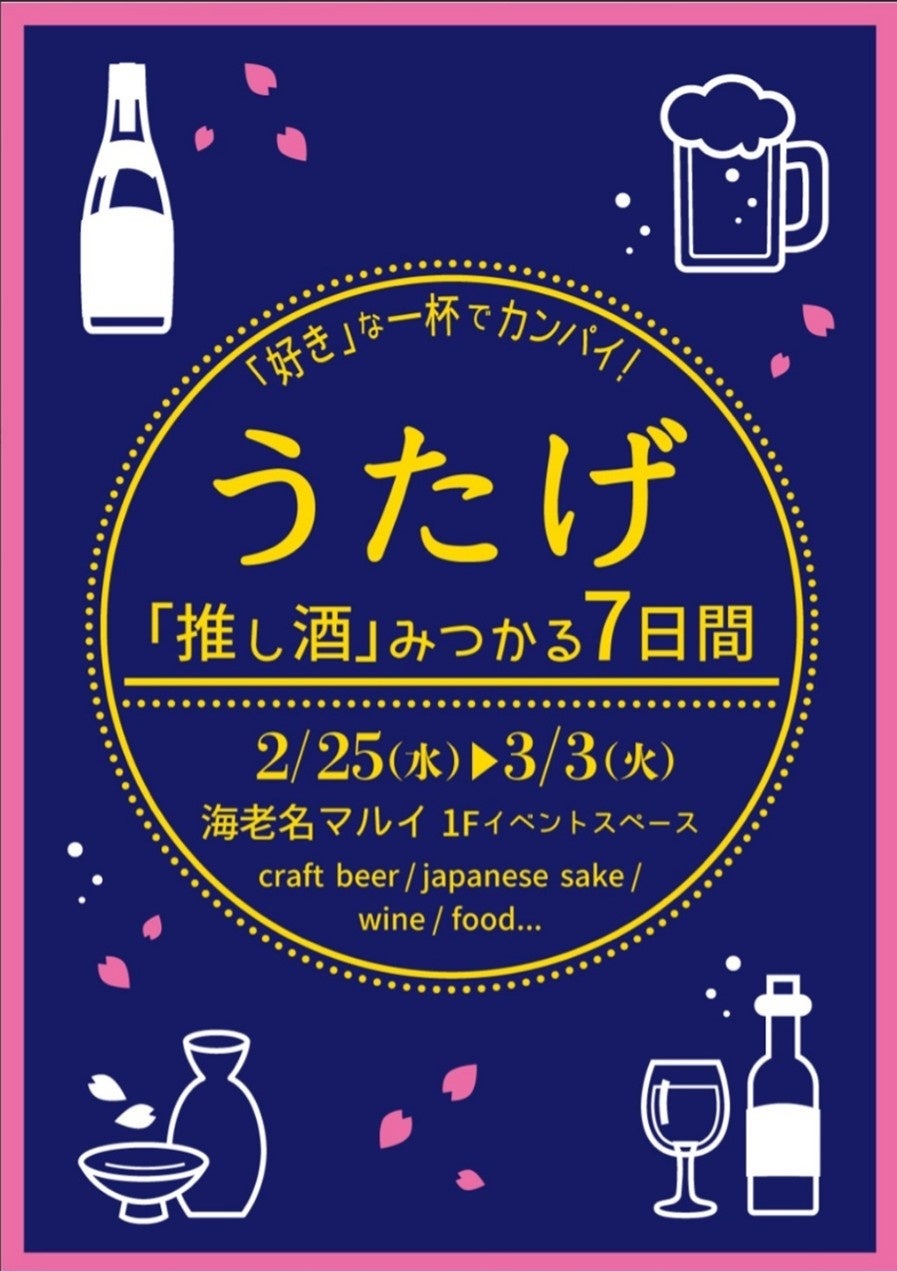 海老名マルイ(株式会社丸井、本社:東京都中野区、代表取締役社長:青野 真博)1Fイベントスペースにて、クラフトビールを始めとしたお酒とおつまみをお楽しみいただけるイベント「うたげ ~『推し酒』みつかる7日間~」を期間限定で開催いたします。