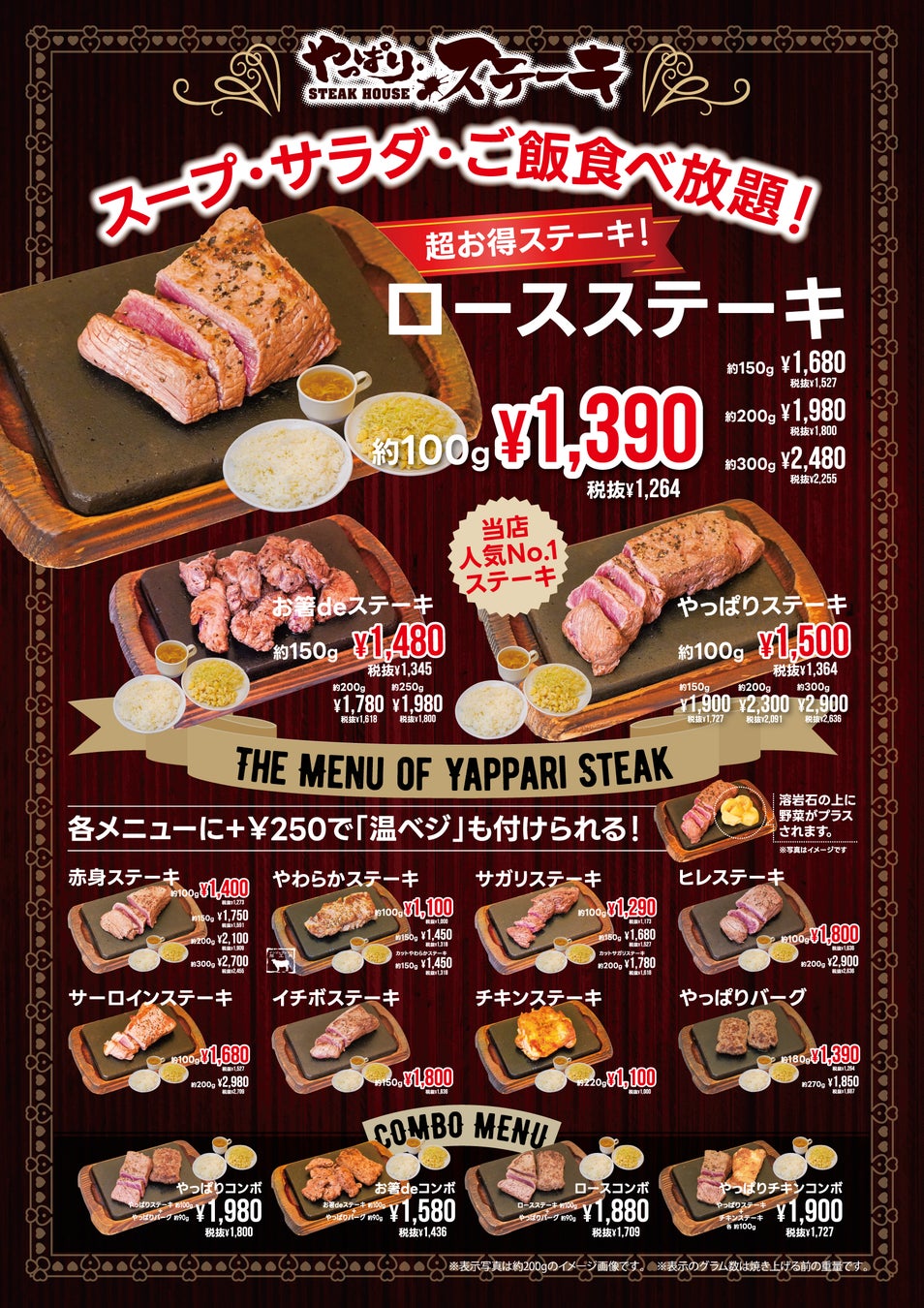 看板商品である「やっぱりステーキ(ミスジ)」は、
