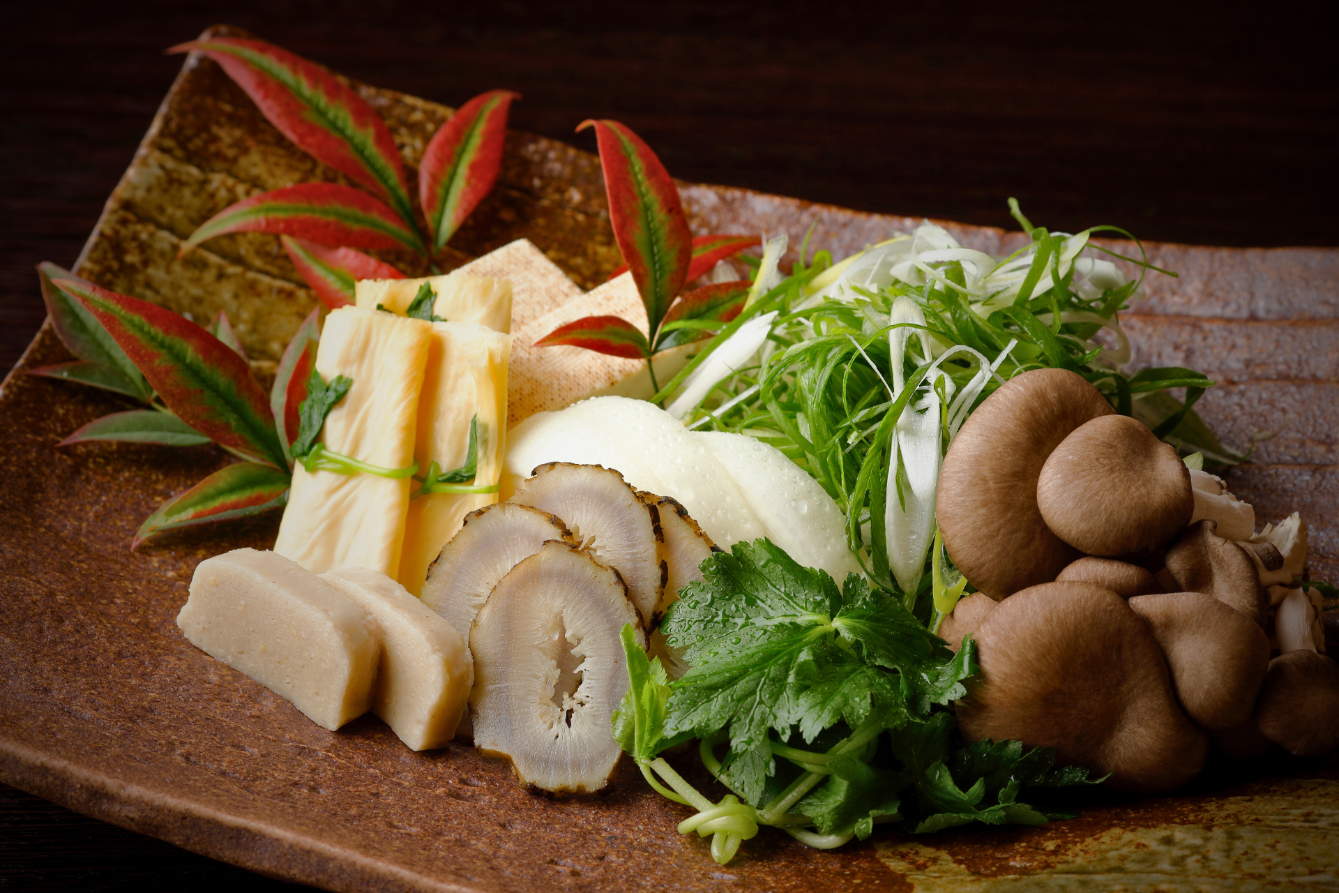 ☆お出汁が見えない程たっぷりと浮かべた「有機マッシュルーム」の生スライスと共に愉しむ、他にはない唯一無二のしゃぶしゃぶスタイルです。