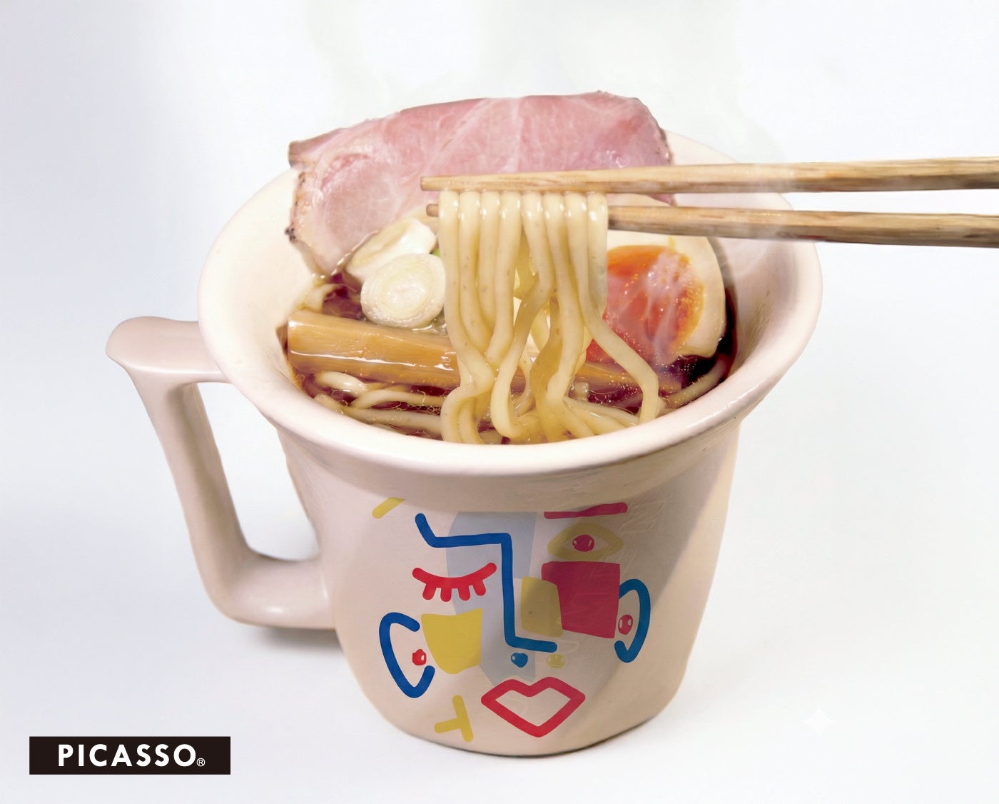 ピカソのアート「マグカップ型ラーメン鉢」で味わう一杯をぜひご堪能ください。