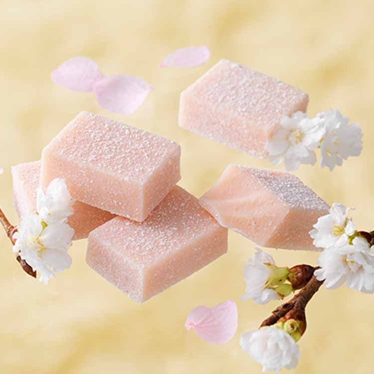 ストロベリーが香るホワイトチョコレートに、桜の味わいとクリームチーズ、ストロベリーリキュールをブレンド。口に入れると、桜のやわらかな香りと甘酸っぱいストロベリーの味わいが広がり、チーズのコクとまろやかにとけ合います。