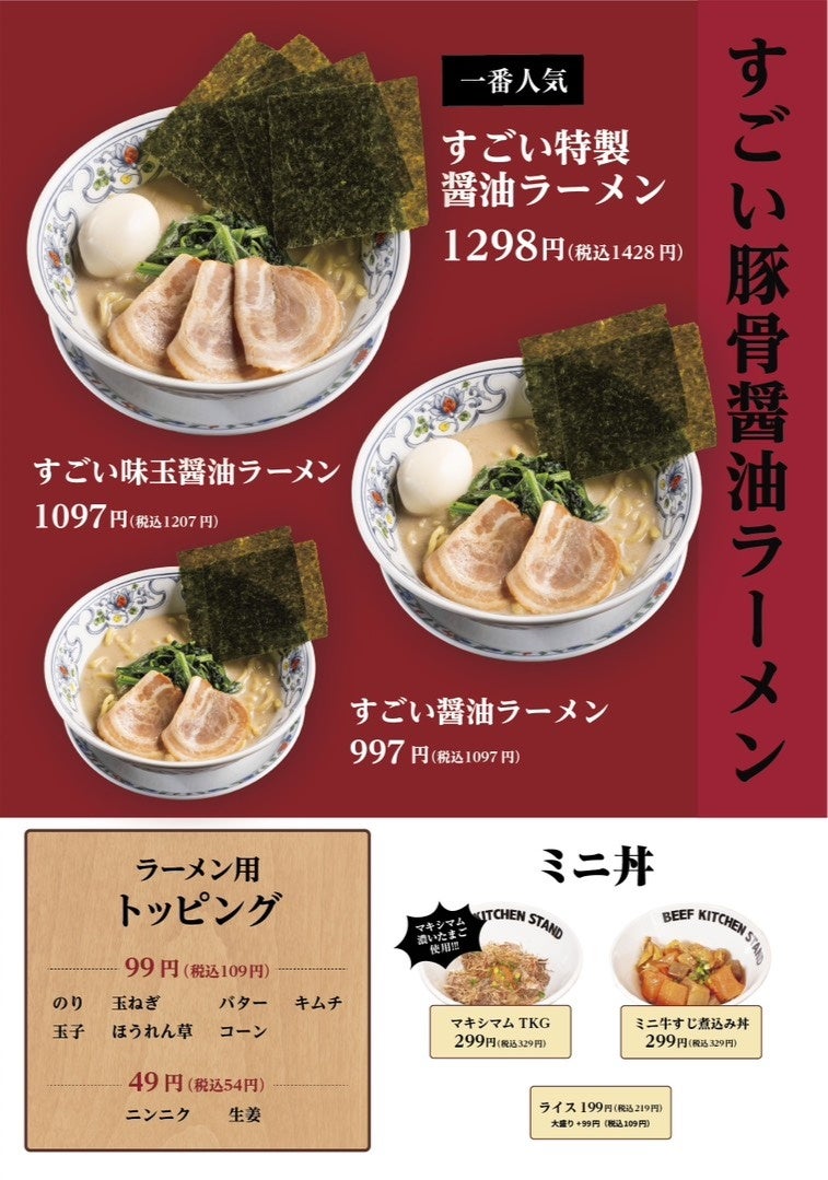 株式会社奴ダイニング(本社:神奈川県横浜市)が展開する肉バル「ビーフキッチンスタンド」は、新商品『すごい豚骨醤油ラーメン』を2026年2月25日(水)より全店舗で販売開始いたしました。