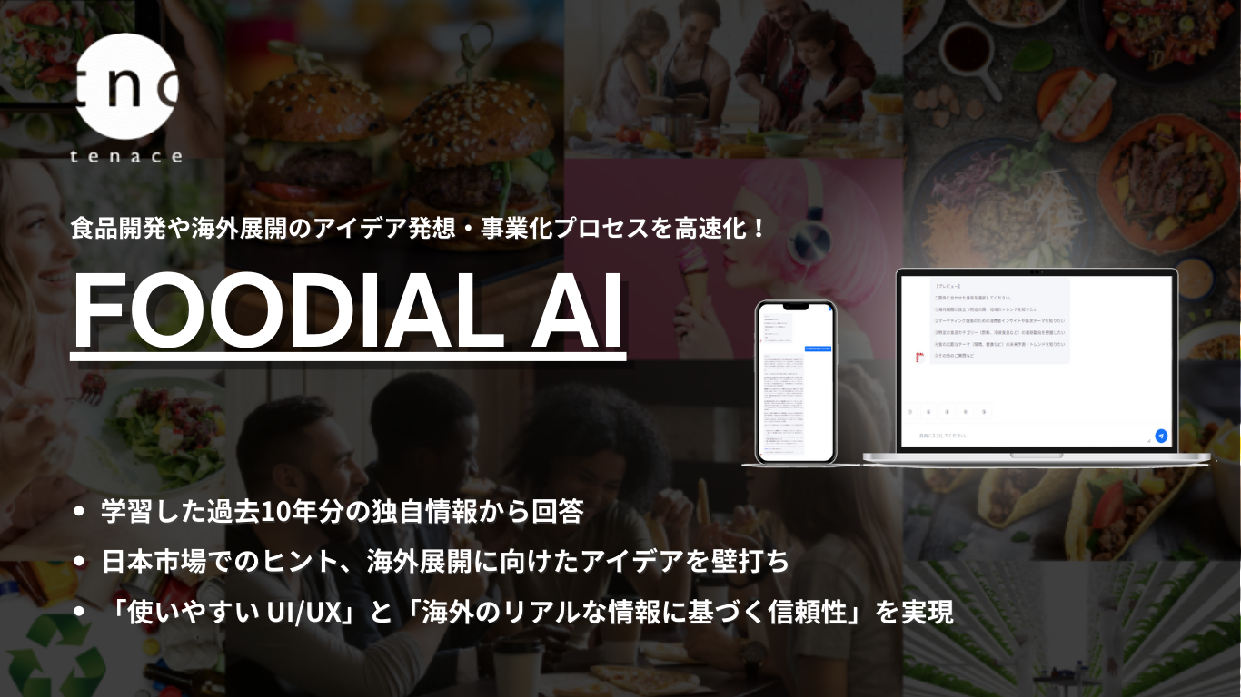 海外リサーチ・マーケティング及び商品開発・PRサポート事業を行う株式会社TNC(本社:東京都渋谷区、代表取締役社長:小祝誉士夫)は、これまで収集してきた世界各地のフードトレンドと、それを読み解いてきた知見にもとづいた対話型AIサービス「FOODIAL AI(フーディアル・エーアイ)」を2026年1月より正式にローンチいたしました。