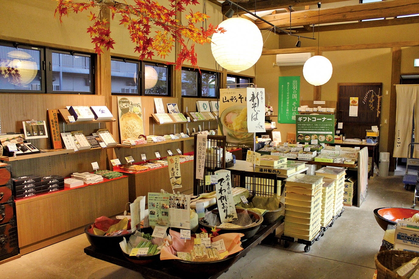 物産販売:山形の人気店の麺などを販売。