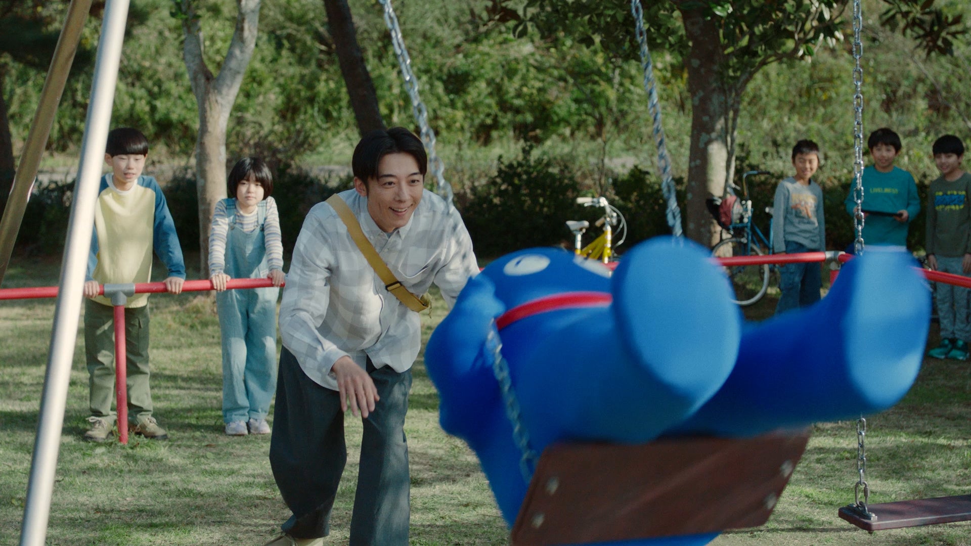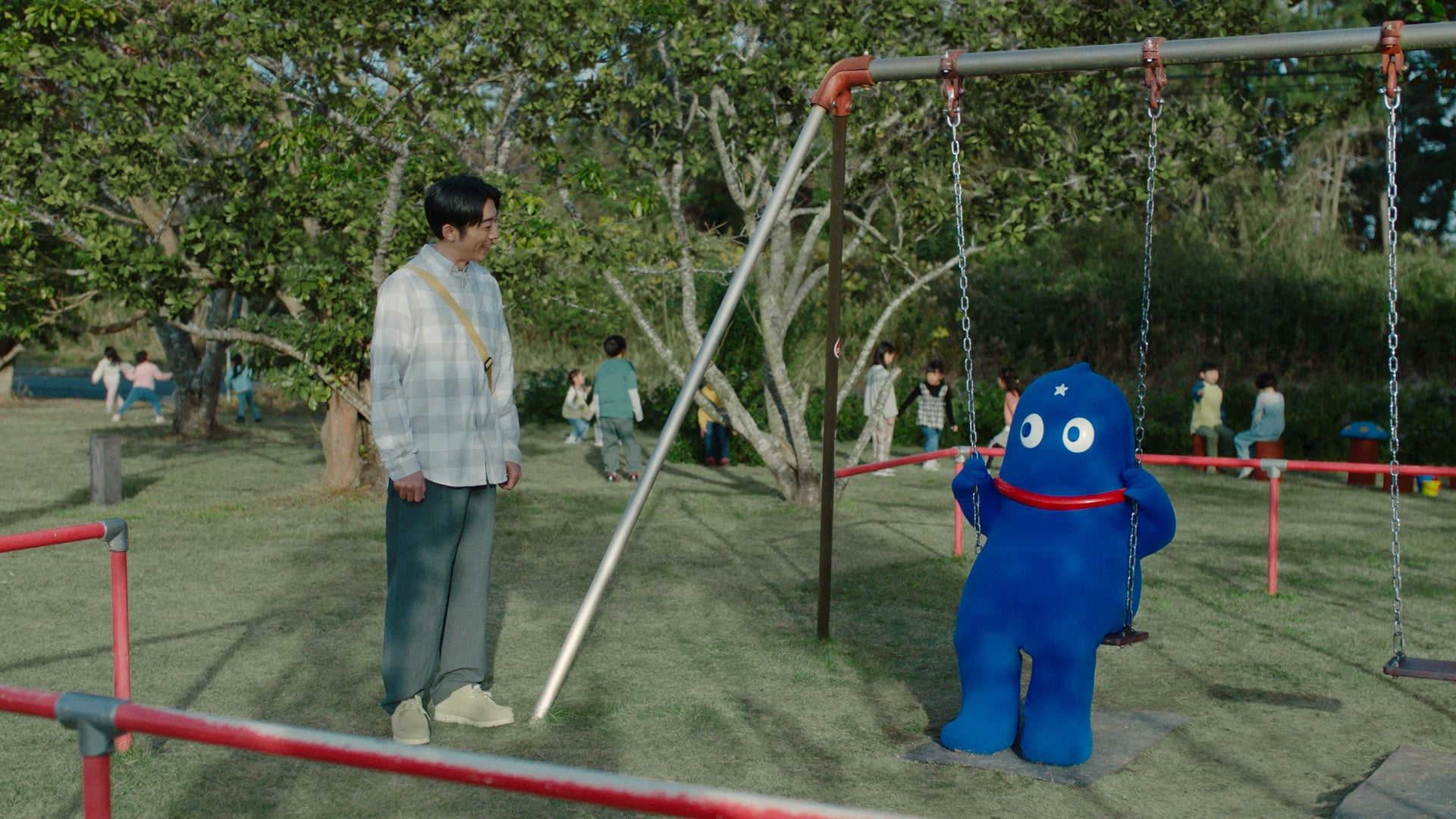 また、公園でのシーンでは勢いよくブランコに揺られるウミオスを気遣う様子も見られ、高橋さんの役者としての表現力と優しいお人柄が、随所ににじみ出た撮影となりました。様々なシチュエーションでのウミオスとの出会いを、見事に演じ分ける高橋さんの表現力と、無邪気なウミオスの様子に是非ご注目ください。