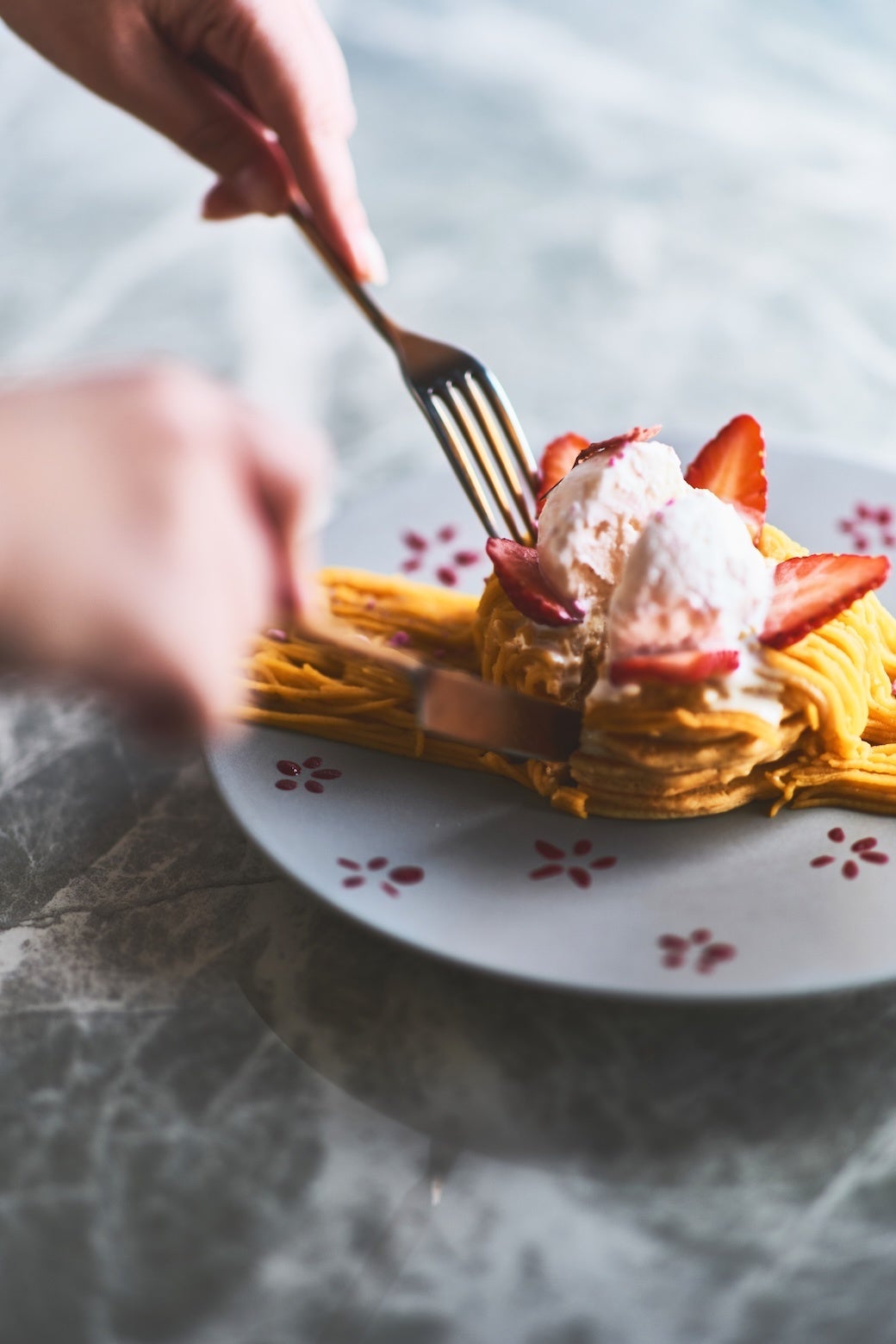 目黒川の水面を美しく染め上げる桜の花びらをイメージした、心ときめく春のパンケーキ。生地は体に優しいグルテンフリーで、その上に、お芋の優しい甘みが広がる濃厚なペーストをたっぷりと絞りました。桜を練り込んだアイスクリームの繊細な香りと、フレッシュな苺の酸味が重なり、濃厚ながらも驚くほどさっぱりとした後味です。ひと口ごとに、春の川辺を散策しているような心地よいひとときをお届けします。¥1,980(税込)