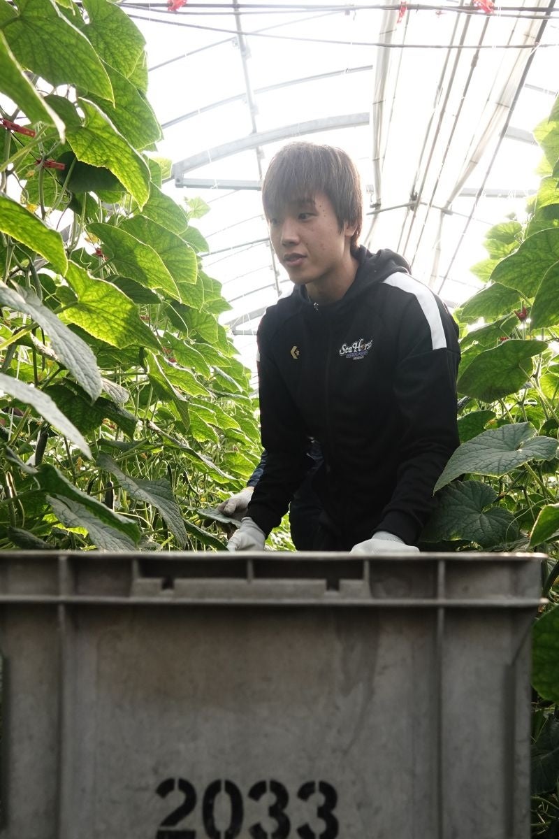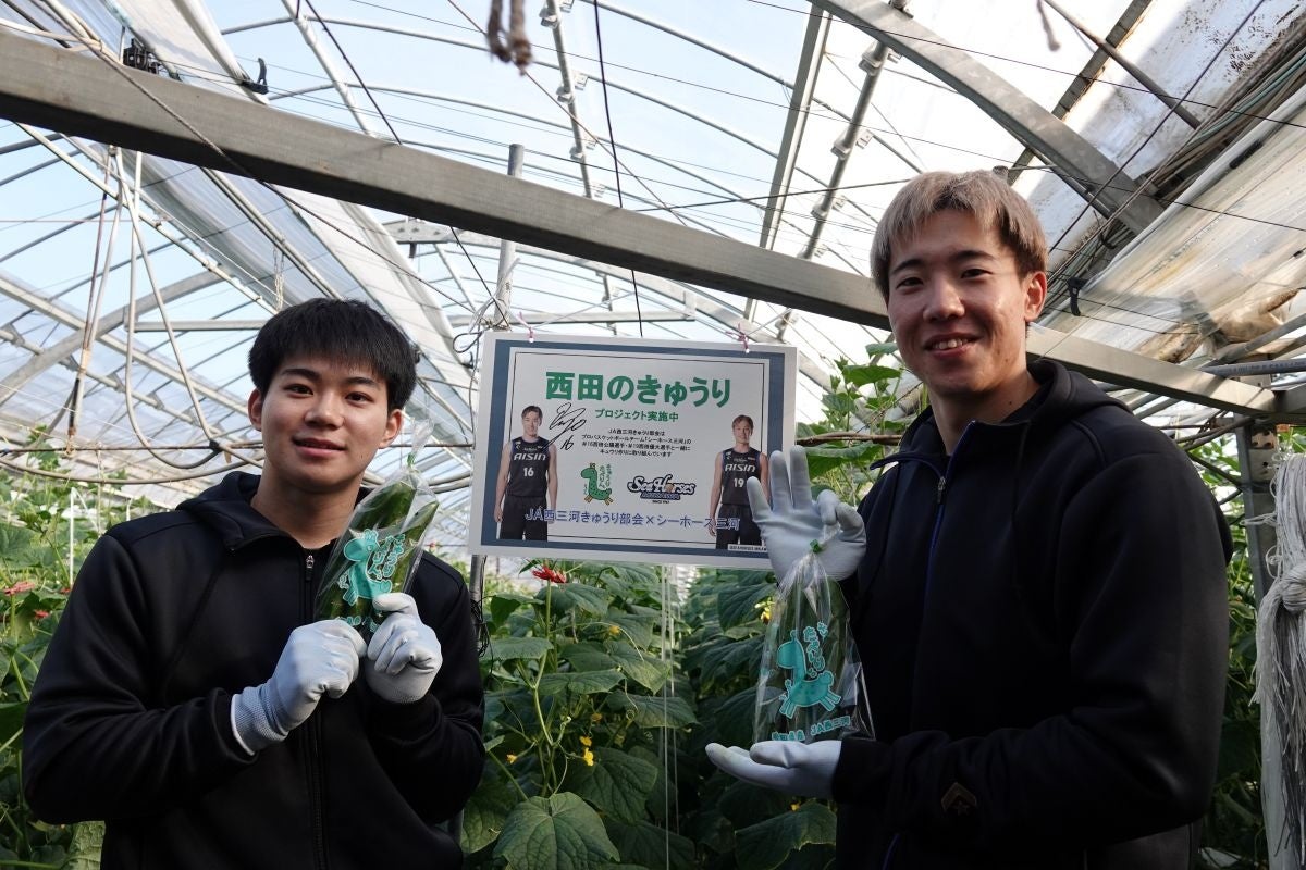 JA西三河きゅうり部会の皆さまのご支援のもと「西田のきゅうり」プロジェクトで育てていたきゅうりを、#19西田優大選手が収穫し、西尾市内のこども食堂へ寄贈いたしました。