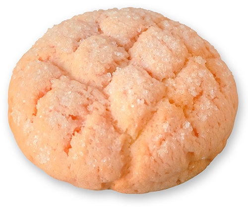 桃山学院大学起業部の学生さん考案。学園祭でも大好評!ふんわりパンで果肉感のある桃ジャムを包み込み、かわいらしい桃色のビス生地をのせ焼き上げました。
