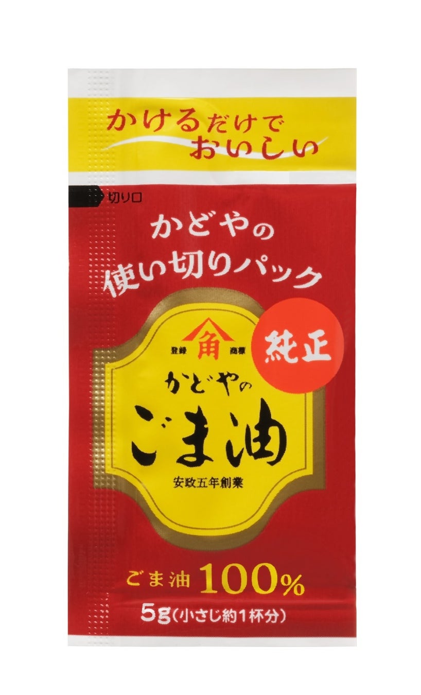 かどや製油では、純正ごま油を調理時に使用するだけでなく、食べる直前に“かける”ことでごま油の風味を最大限楽しむ使い方を提案いたします。今回発売する使い切りパックは、外出先や職場など、さまざまなシーンでごま油の“かける使い”を気軽に取り入れられるよう開発いたしました。中食・個食化が進むなかで寄せられた「少量だけ使いたい」「外でも使いたい」というお客様の声に応え、個包装だからいつでも新鮮、“かける・香る・仕上がる!”を実現できる商品として発売いたします。