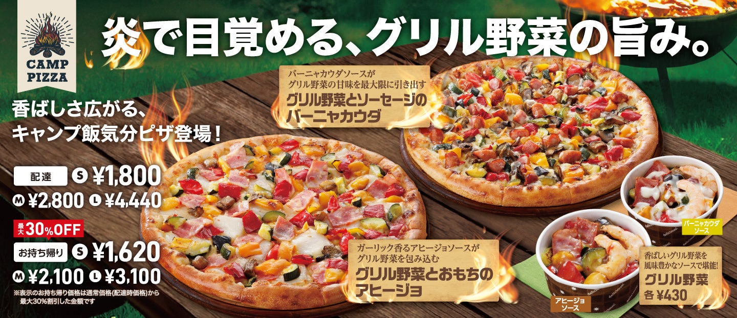 キャンプ飯気分を楽しめるピザはもちろん、皆さまのお気に入りの定番ピザとも一緒にお楽しみください。