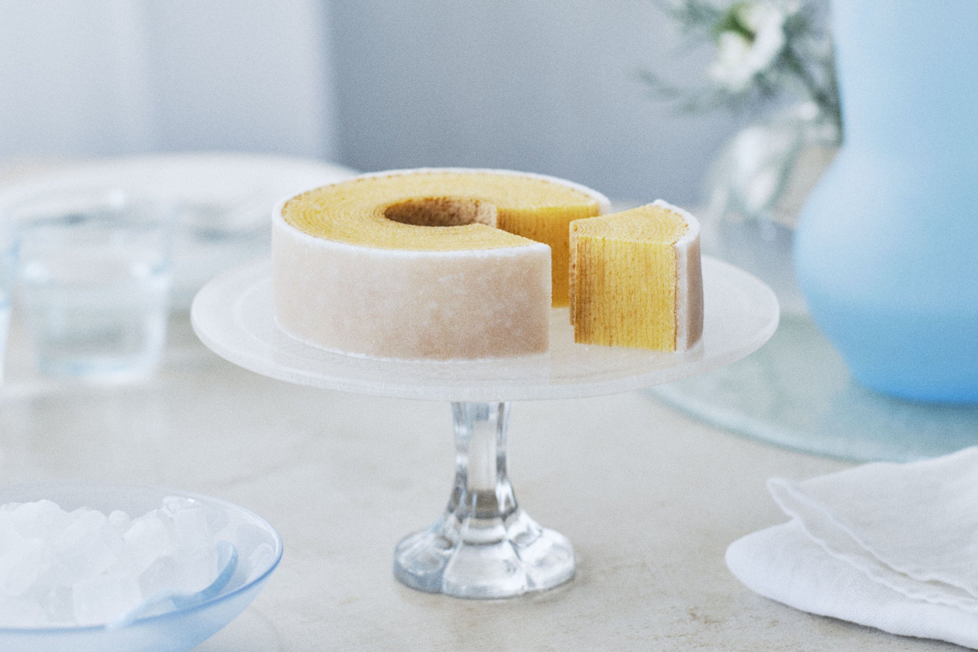 治一郎の看板商品のバウムクーヘンのまわりについたグレーズコーティングを増し増しでご用意しました。しゃりしゃり甘党さんに捧げるバウムクーヘンです。