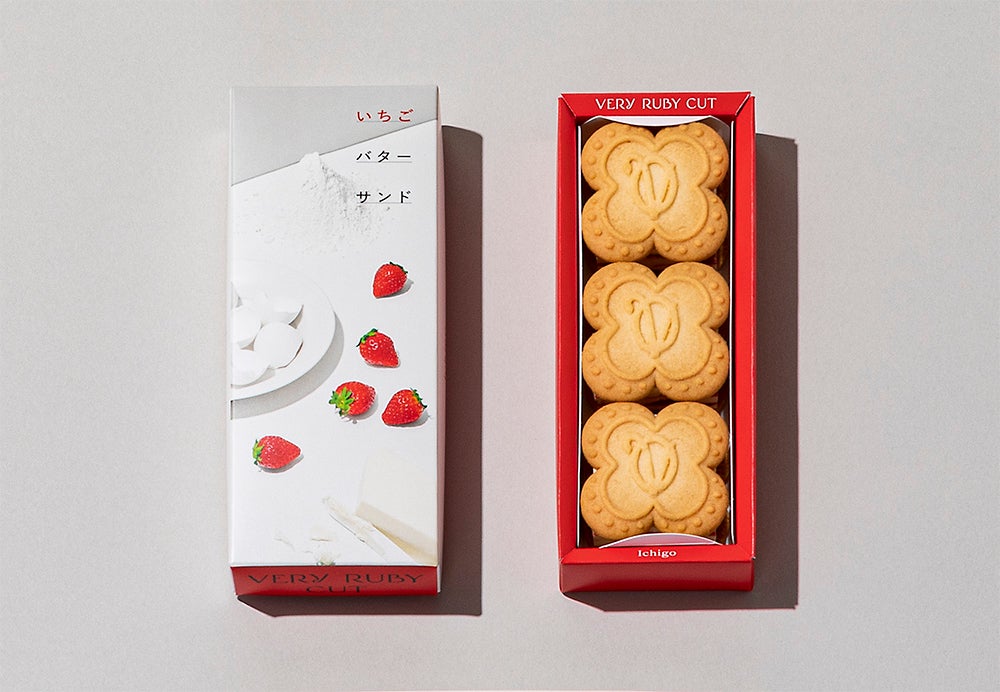 「VERY RUBY CUT」で行列必至の極厚『いちごバターサンド』から、バタークリームもジューシーな苺仕立てになって新登場!素晴らしい香りが特徴の苺「サンアンドレアス種」の果肉を苺のピューレで煮込んで仕立てた、苺本来の甘みと酸味を味わえる苺コンフィチュールジュレに、爽やかな苺ホイップバタークリーム。ダブルの苺の美味しさをとろとろ混ぜて贅沢な厚みのまま、発酵バター香るクッキーではさみました。ひと口ごとに苺の甘酸っぱさがふわっと広がり、バターのコクがやさしく溶けていく、春が待ち遠しくなりそうな苺づくしの極厚バターサンドをたっぷりご堪能ください。