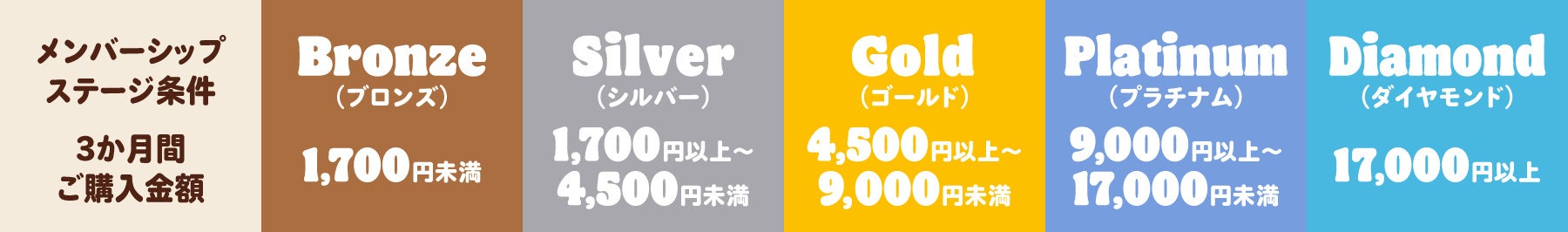 ステージ条件のご購入金額は、3か月前の25日から当月24日までの合計金額でステージ更新されます。