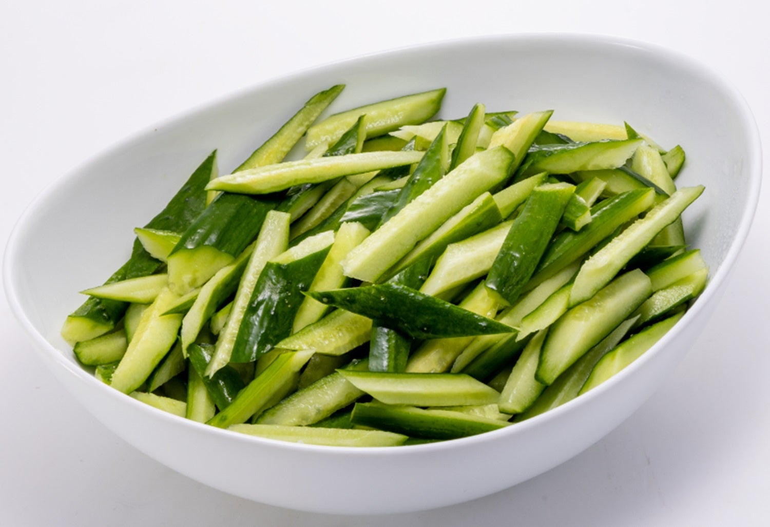 水っぽくなるのを防ぐためきゅうりの種を取り除くようにカット。パリパリとした食感が楽しい野菜です。