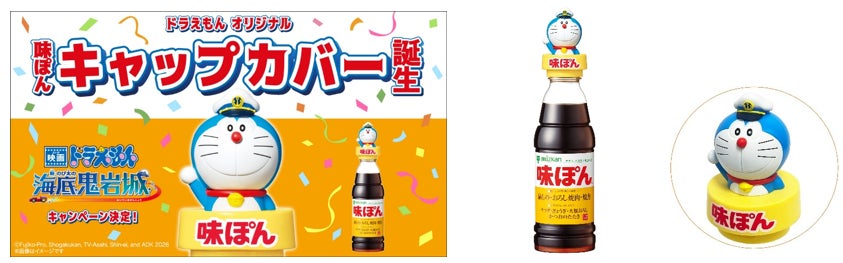 本キャンペーンでは、対象商品を購入するとドラえもんのオリジナル「味ぽんキャップカバー」がもらえる店頭施策に加え、映画の世界観と連動したテレビ CM・WEB CM を展開。味ぽんひとつで、いつもの食卓が“食の冒険”に変わる楽しさを提案します。