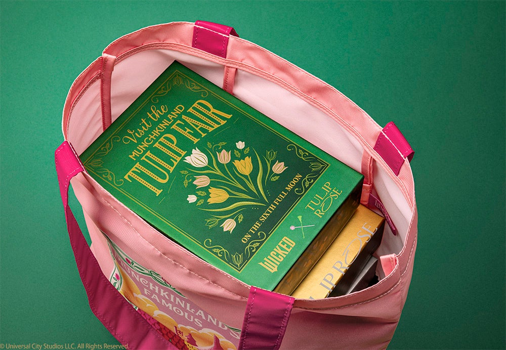 映画に登場する舞台の一つである“マンチキンランドに広がるチューリップ畑”をテーマにしたコラボレーションアイテム。「TOKYO TULIP ROSE」のブランドカラーと映画『ウィキッド 永遠の約束』で共通する“深いグリーン”が印象的なスペシャルボックス『WICKED edition』と、総柄デザインが華やかなオリジナルポーチが一緒に楽しめる『ポーチセット』は自分用としてはもちろんプレゼントにもおすすめです。ポーチは小物が収納しやすい内ポケット付き。チャーム部分には「TOKYO TULIP ROSE」のブランドロゴをあしらった、こだわりのデザインです。