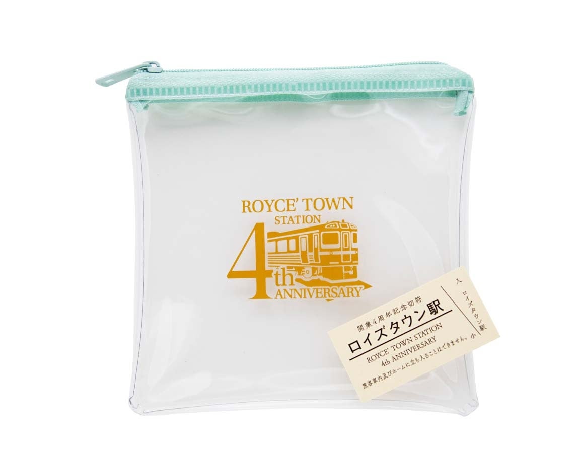 ロイズタウン駅4周年記念ロゴをデザインした、縦約13.5cm×横約13.5cmのクリアポーチです。