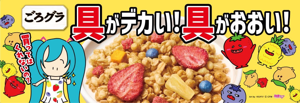 「ごろグラ」を買ってもらおうと、かわいらしく駄々をこねる初音ミクや、「ごろグラ」の具材をイメージした表情豊かな「具材キャラクター」が見どころです。