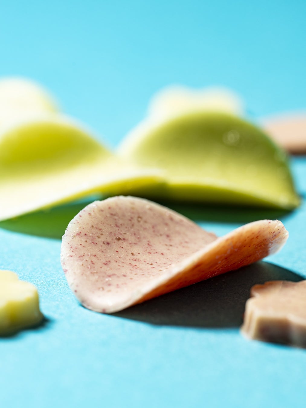 「オーガニックと自然素材は心と身体においしい」を哲学に、身体へのやさしさを追求しました。合成着色料を使わず素材本来の色で描いたペタルは、特許製法による本物の花びらのような仕上がり。パリッとした食感とやさしい口どけの中に、自然の香りが広がります。可憐な一枚に込めた、私達のフィロソフィをご堪能ください。