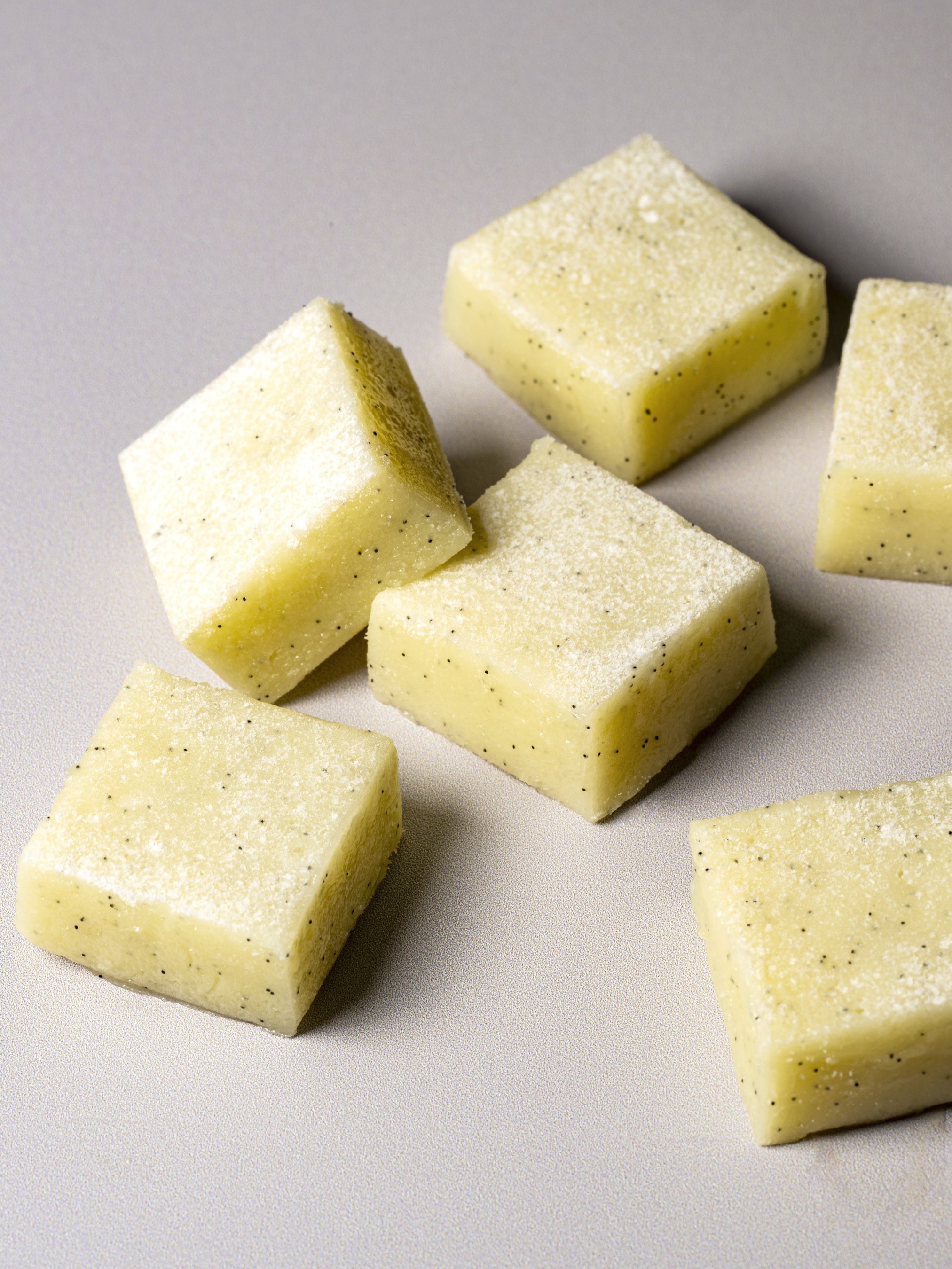 「白チョコは甘すぎる」そんな常識が覆ります。計算された甘さと贅沢な香草の香りで、驚くほど澄んだ口どけを実現しました。口の中で「すっ」と消え、残るのは静かな余韻だけ。濃厚なのに軽やか、未体験のおいしさをぜひお楽しみください。