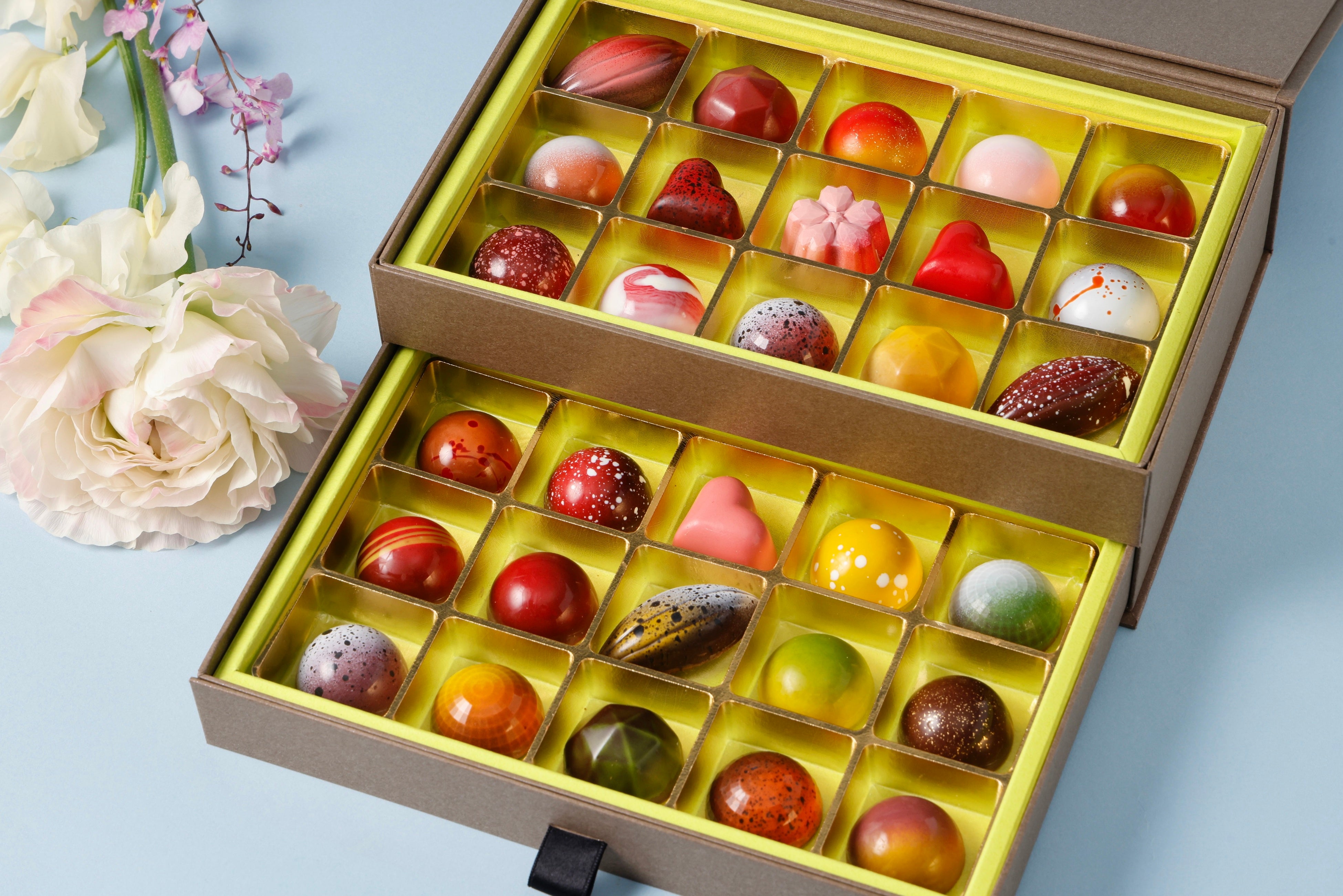 新作を含む厳選された30粒のショコラを、宝石箱のような2段ボックスに詰め込んだ贅沢なアソート。