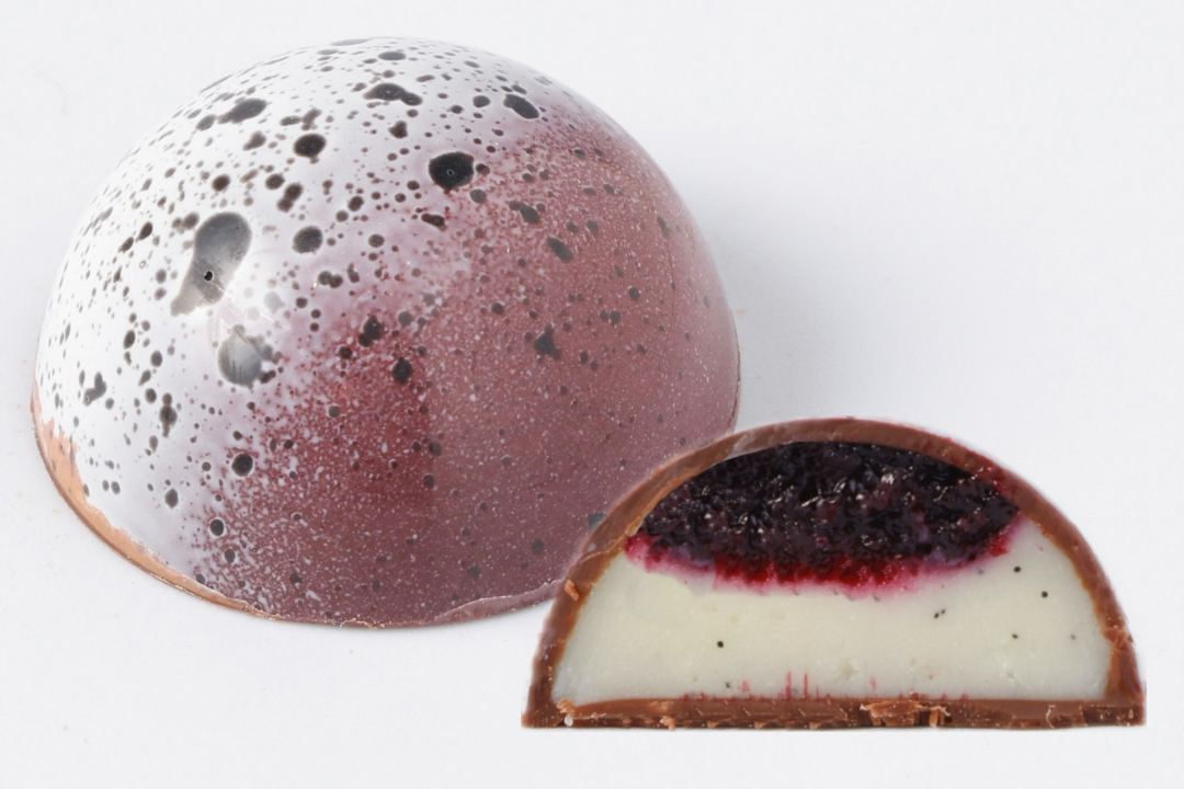 カシスのコンフィとウガンダ産バニラ、トンカ豆の香るバニラガナッシュ