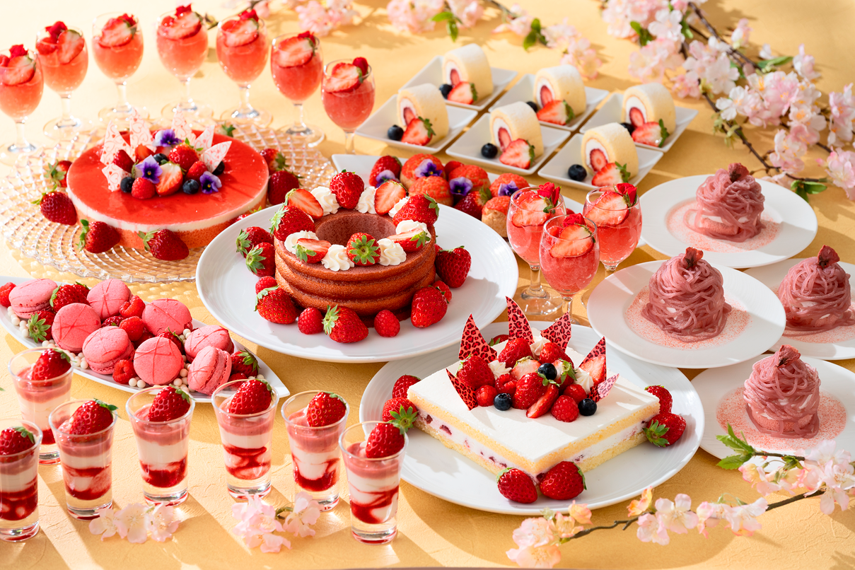 甘酸っぱい苺を主役にした春限定スイーツブッフェ。春色に彩られたケーキやデザートが心ときめくひとときを演出します。上質な雰囲気の中、オリジナルノンアルコールカクテル2種や、充実の軽食も楽しめる心ほどけるスイーツタイムをお楽しみください。