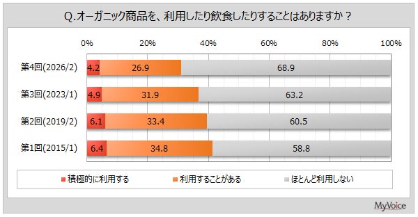 マイボイスコム株式会社(東京都千代田区、代表取締役社長:高井和久)は、4回目となる『オーガニック商品』に関するインターネット調査を2026年2月1日~7日に実施しました。